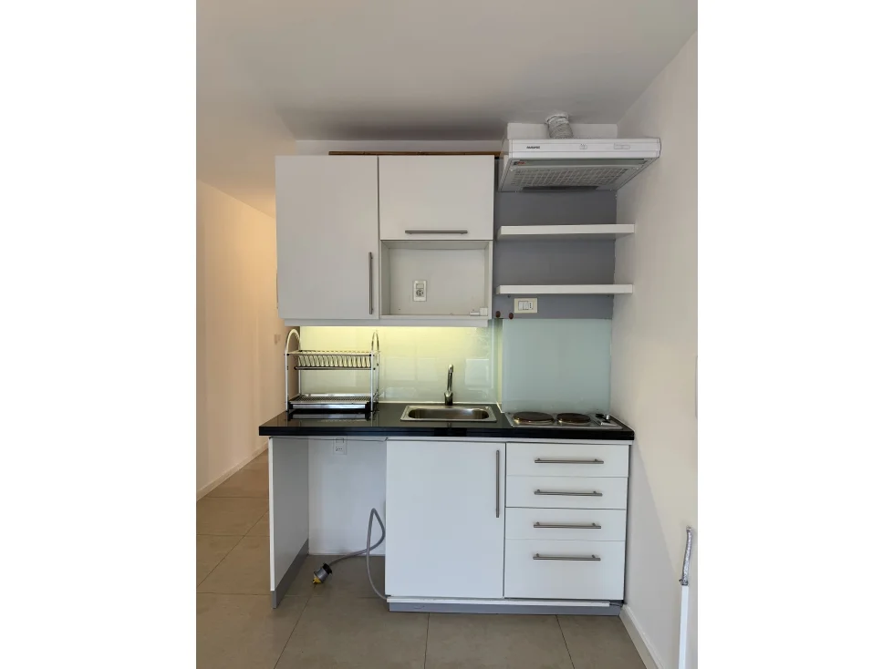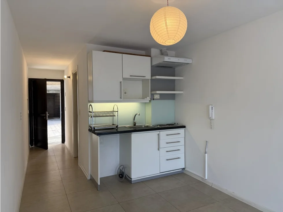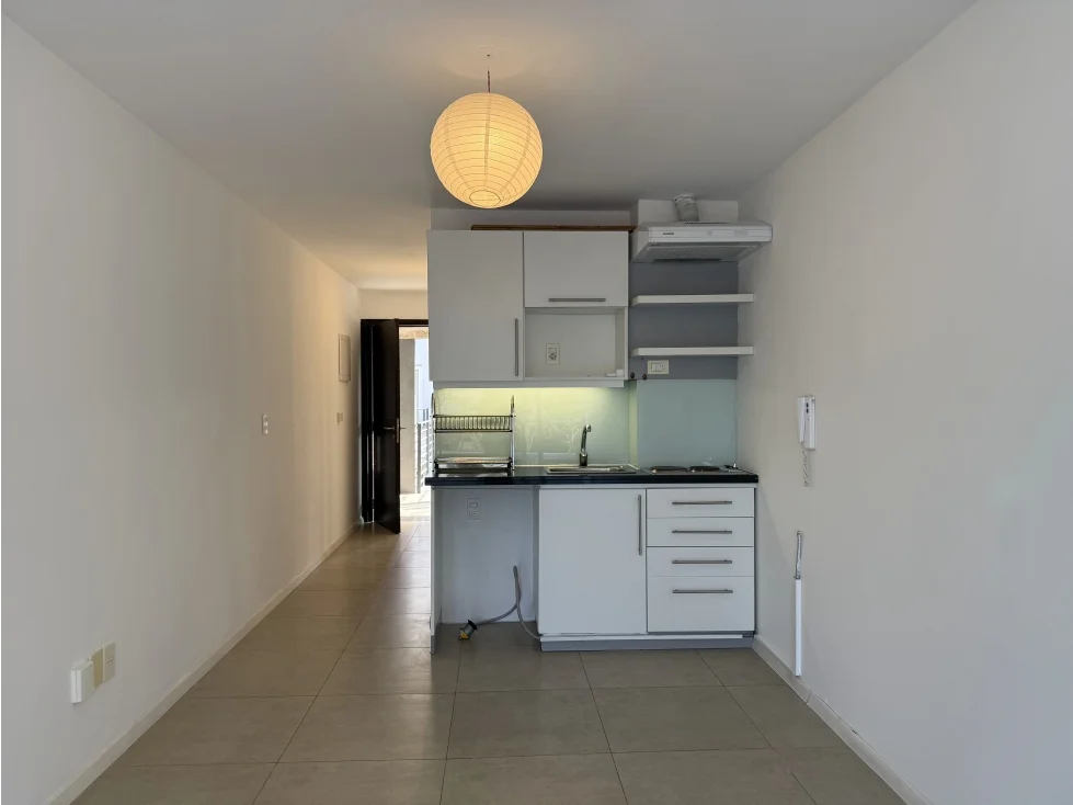 Kitchenette con anafe, bajo mesada con cajones y mueble aéreo