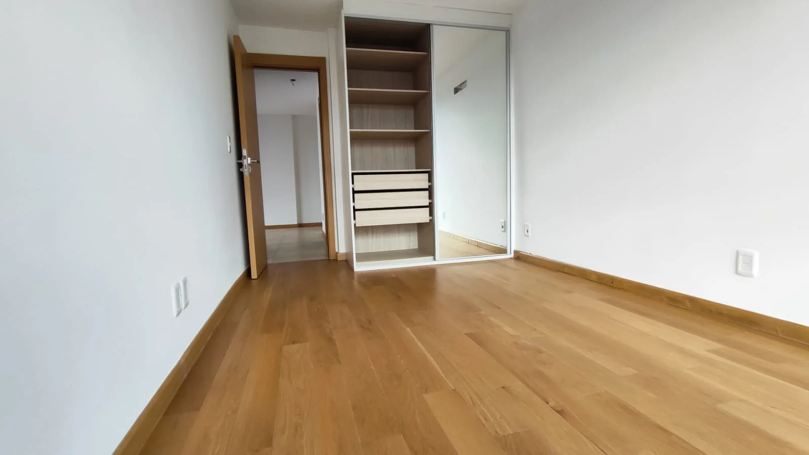 Dormitorio con placar, amplio ventanal con vista al atardecer