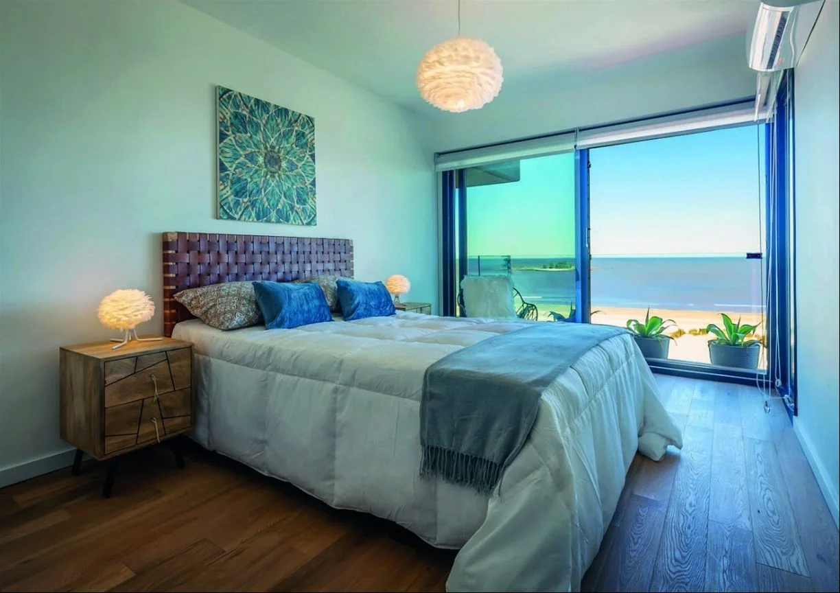Presentamos una magnífica unidad de 90 m² totales, que destaca por su luminoso living comedor con acceso directo a una terraza frontal, ofreciendo una vista ininterrumpida al mar. Dispone de dos amplios dormitorios con placares integrados y dos baños completos. La cocina, definida y espaciosa, cuenta con generosos placares y se complementa con una práctica mesada.