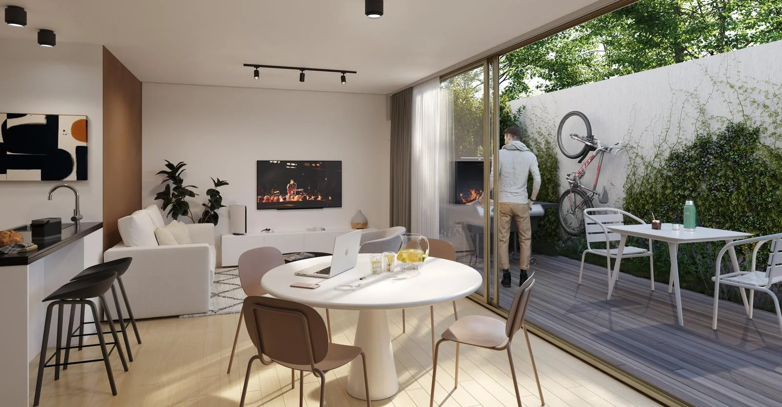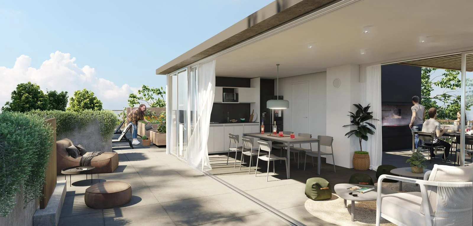 Diseñado para maximizar el espacio, el apartamento cuenta con un baño completo y se distribuye en dos ambientes de estar, además de tres áreas destinadas al comedor, ofreciendo versatilidad en su uso.