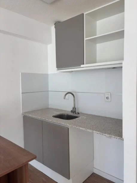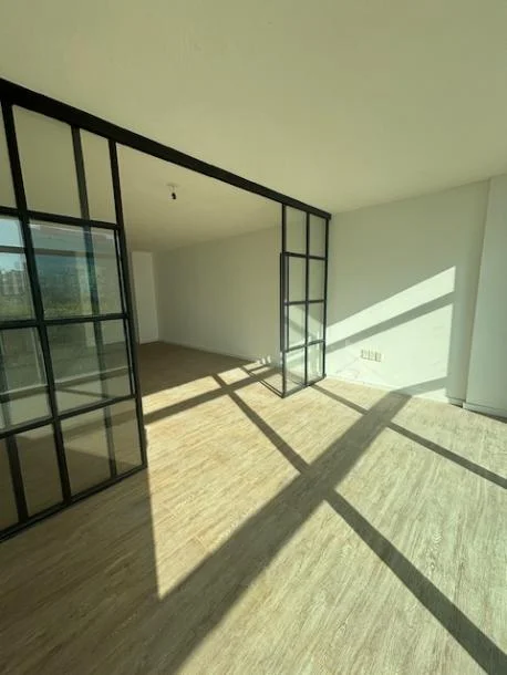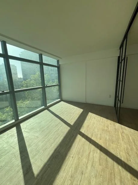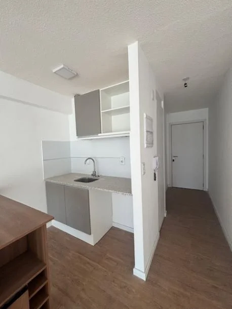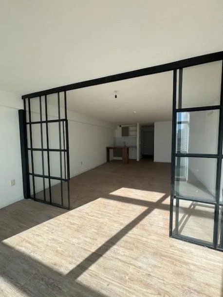 Amplio monoambiente subividido por puerta corrediza de hierro y vidrio lo cual le otorga mucha luminosidad a todo el apartamento, definiendo 1 dormitorio hacia la fachada del Edificio.