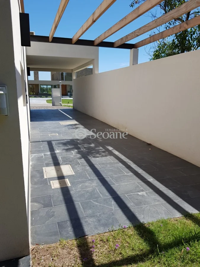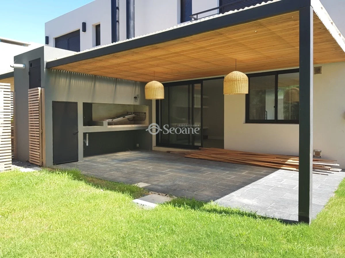 Excelente opción, completa, cálida, segura y con mucho sol. Jardín al frente, recepción, amplio living comedor, toilette. Cómodo estar con estufa a leña y cocina semi integrada con anafe, horno y campana. Desde el estar, salida a pérgola techada con parrillero y hermoso jardín verde. Servicio completo. Toda la casa cuenta con aberturas con vidrio doble, pisos de porcelanato importados. En planta alta: 3 dormitorios con placares, el principal en suite con vestidor y salida a terraza. Segundo baño completo. Cochera lateral techada. Todos los ambientes con aire acondicionado. Calefacción y agua caliente por caldereta a gas. Seguridad 24hs.