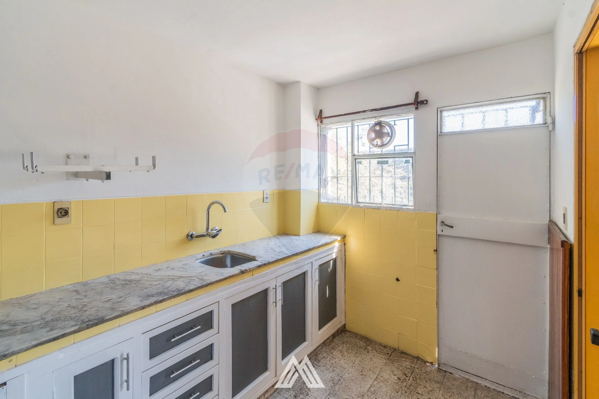 Cocina definida con salida a balcón al frente.