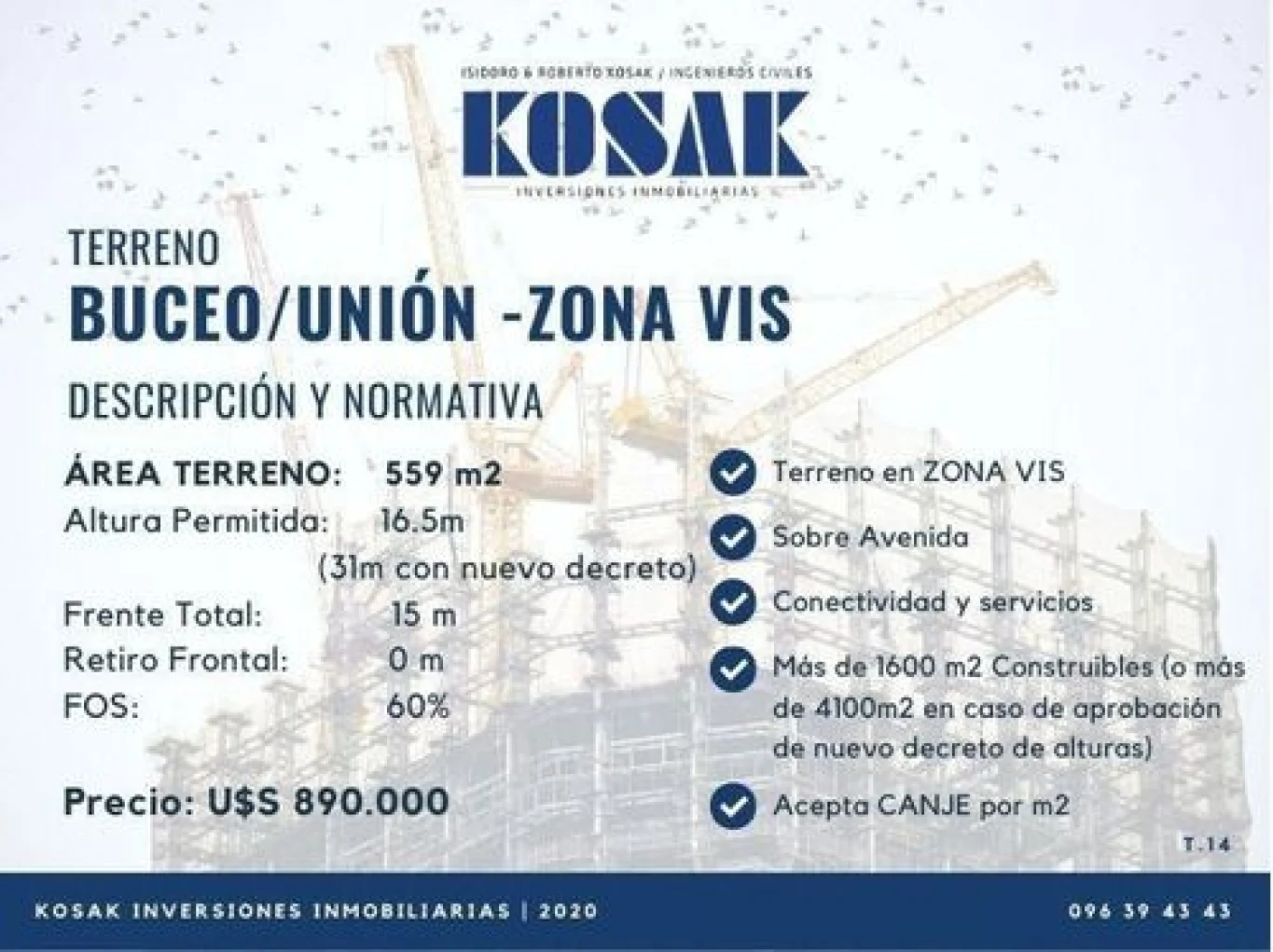 KOSAK INVERSIONES - TERRENOS Terreno sobre Av. Italia en zona VIS Área: 559m2 (499m2 después de ensanche de Av. Italia)