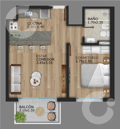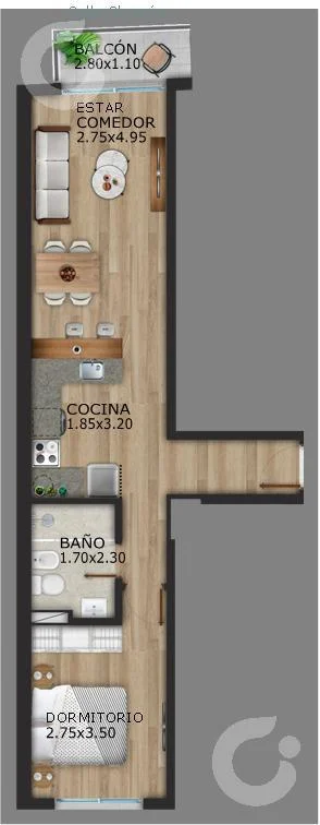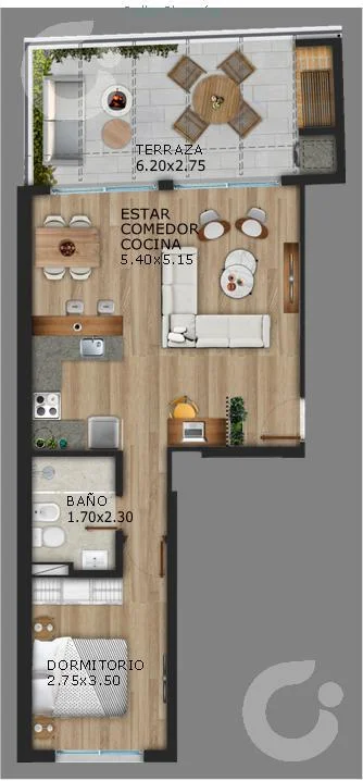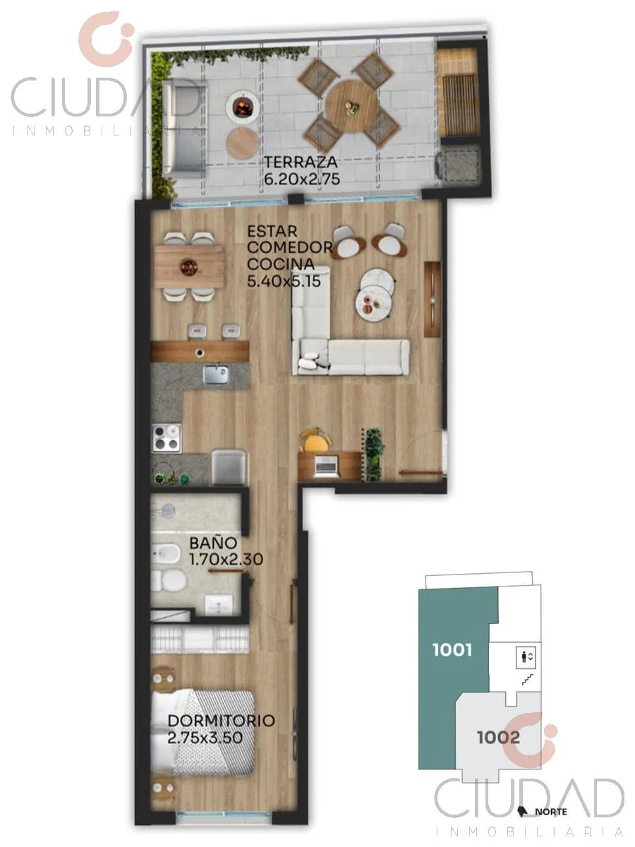 Unidad de 1 dormitorio con amplia Terraza con Parrillero propio.