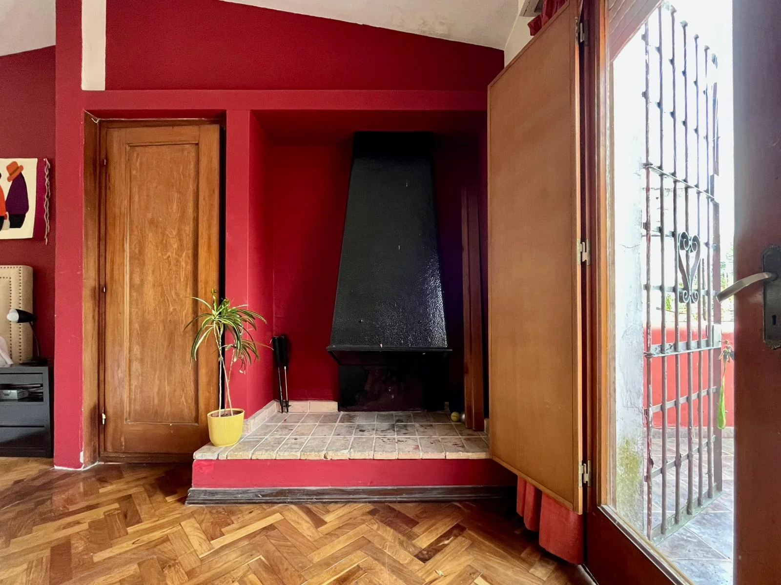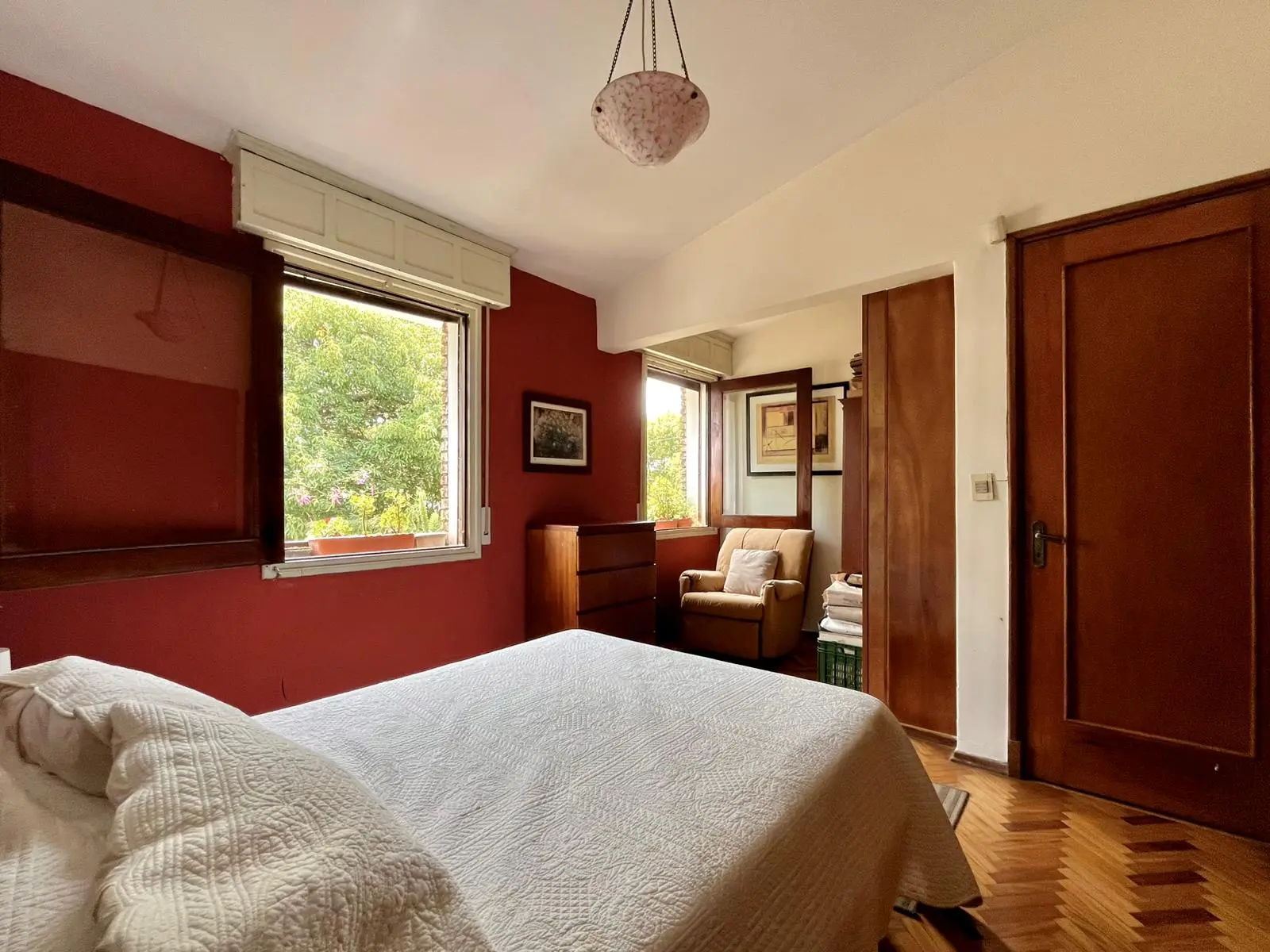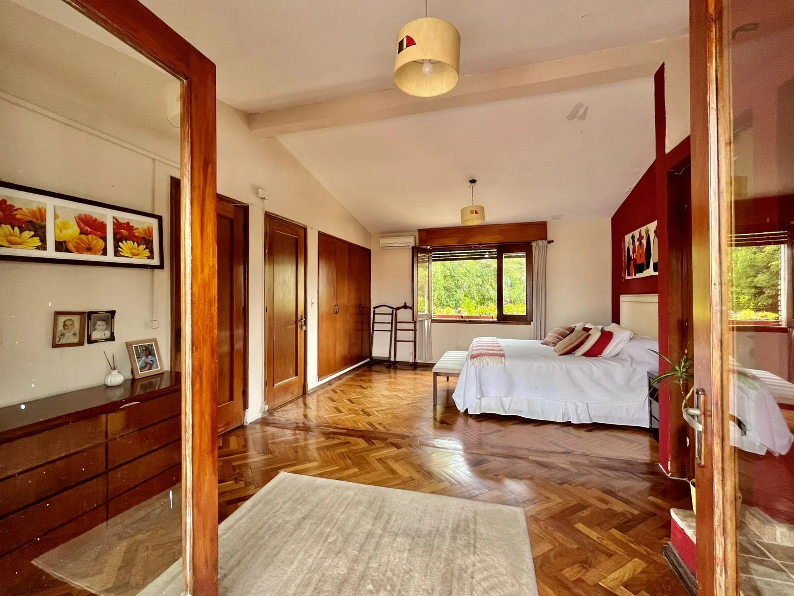 El dormitorio principal tiene: estufa a leña y salida a otra bella terraza. Antes fueron 2 dormitorios y como conservaron las aberturas, se podría volver atrás y generar otro dormitorio más.