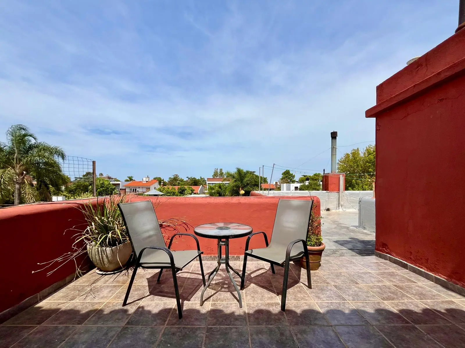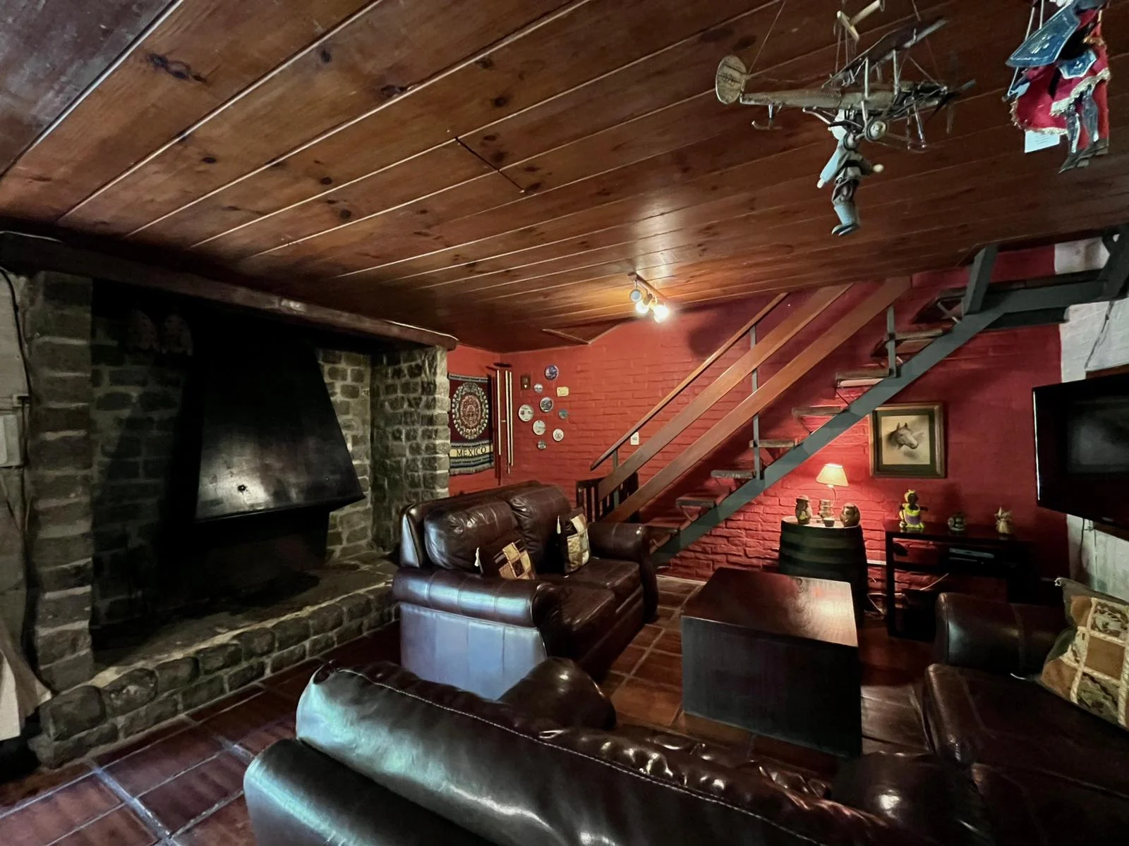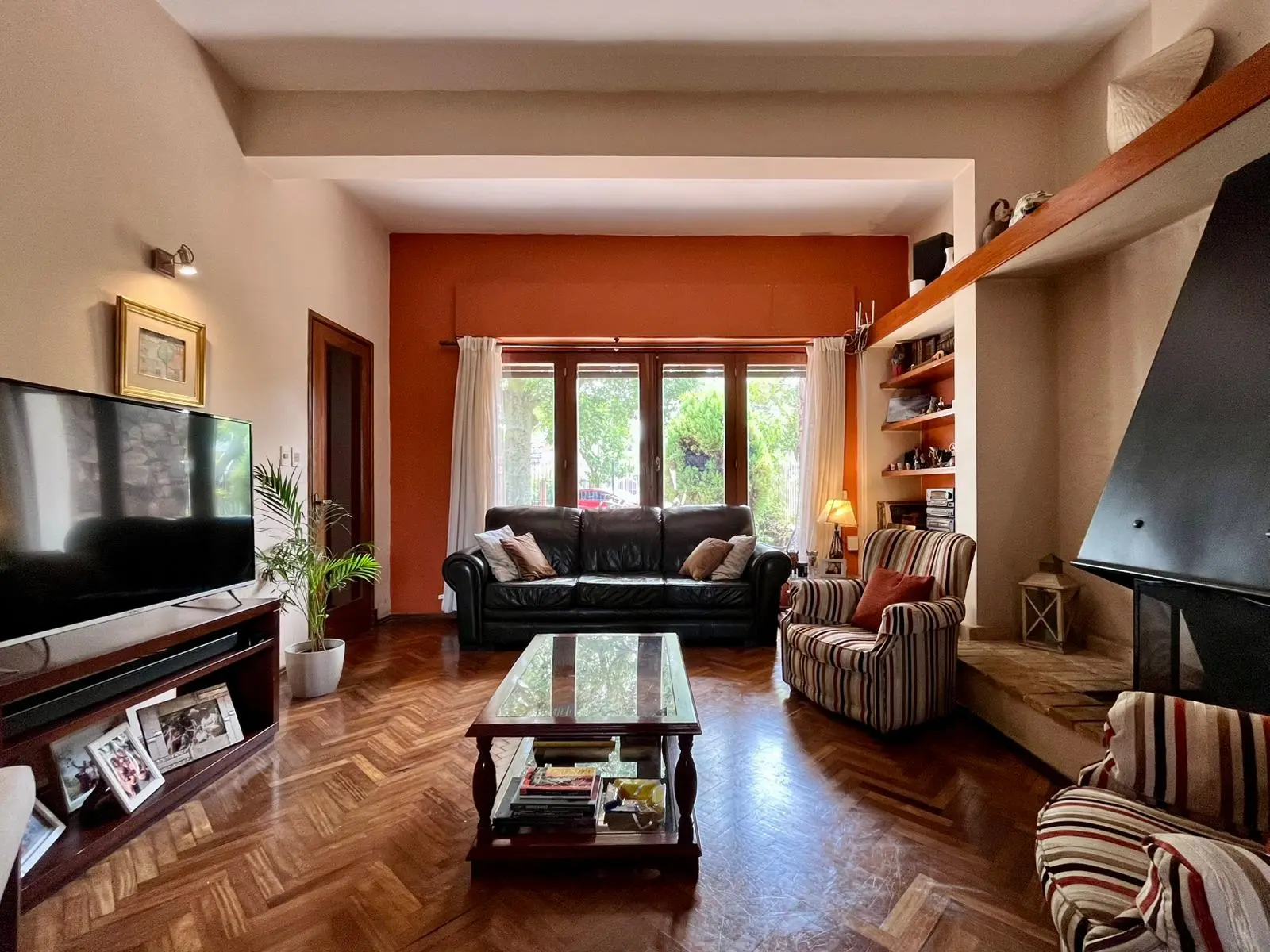 El dormitorio principal tiene: estufa a leña y salida a otra bella terraza. Antes fueron 2 dormitorios y como conservaron las aberturas, se podría volver atrás y generar otro dormitorio más.