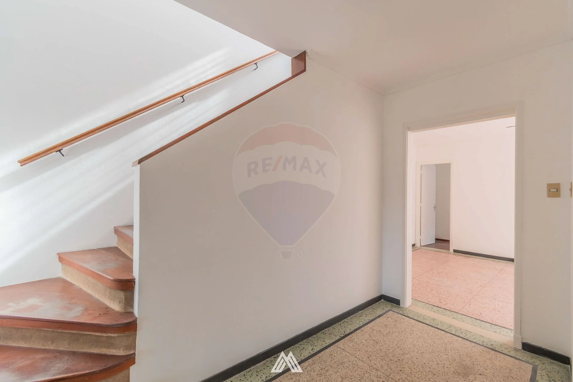 En el otro sector del apartamento, un área distribuidora conecta con la cocina, el baño, el dormitorio principal y la escalera que conduce a la azotea.