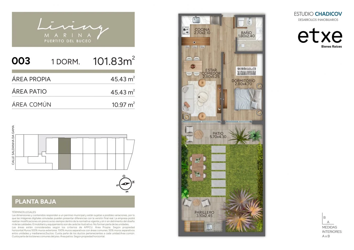 Área Propia: 45.43m2