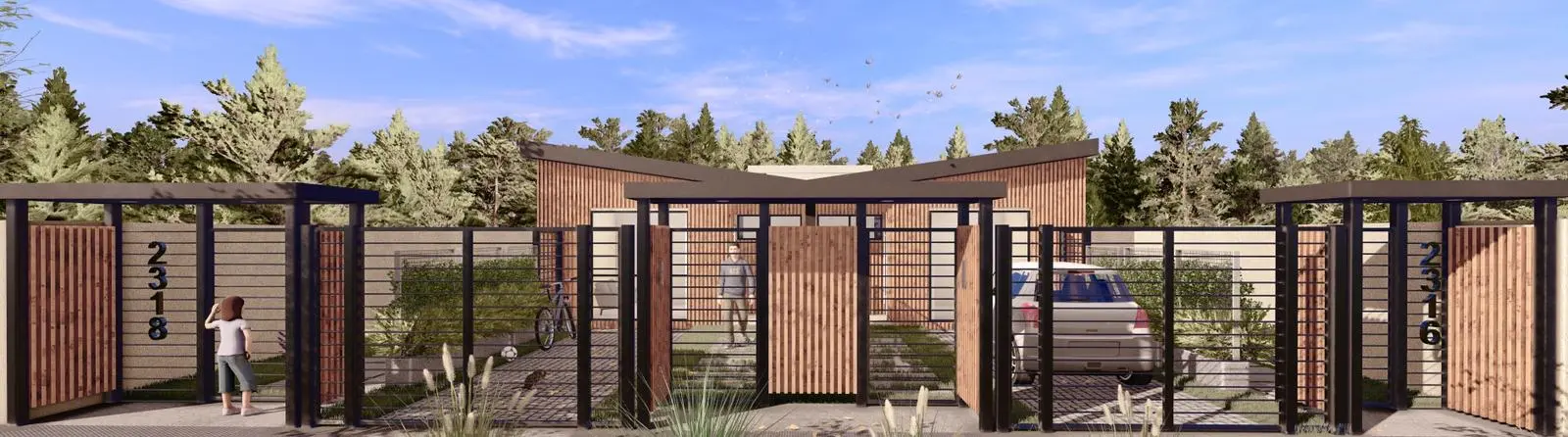 La edificación desarrollada totalmente en una planta se constituye de 8 apartamentos de un dormitorio, dos de ellos al frente cuentan con estacionamientos, 4 monoambientes y al fondo un apartamento tipo casa que cuenta con patio.