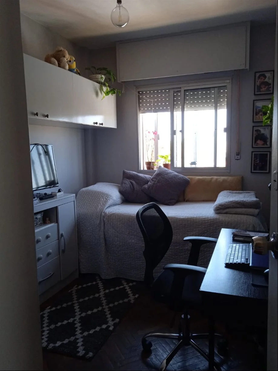 El apartamento cuenta con 3 dormitorios , piso parquet, 1 baño, cocina y living comedor de buenas dimensiones y amplio ventanal con vista despejada en 4to piso por ascensor. Orientación Sur, despejado y muy luminoso en todas las habitaciones. Cuenta con placares empotrados en todos los cuartos, cocina con placares alto y bajo mesada con buena capacidad de almacenamiento, lugar para mesita de desayuno y doble pileta. Baño equipado y con bomba de presión de agua. Baño y cocina, actualizados hace unos años. Gastos comunes $ 4500.