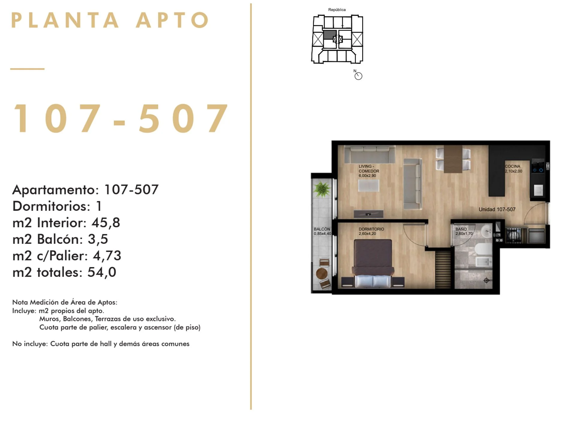 El apartamento se ubica en el piso 5, del edificio llamado VELVET.