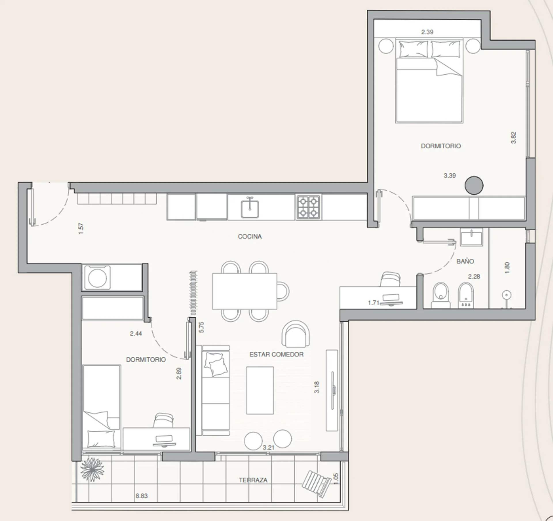 Todas las unidades con ambientes cómodos y funcionales, y amplias terrazas.