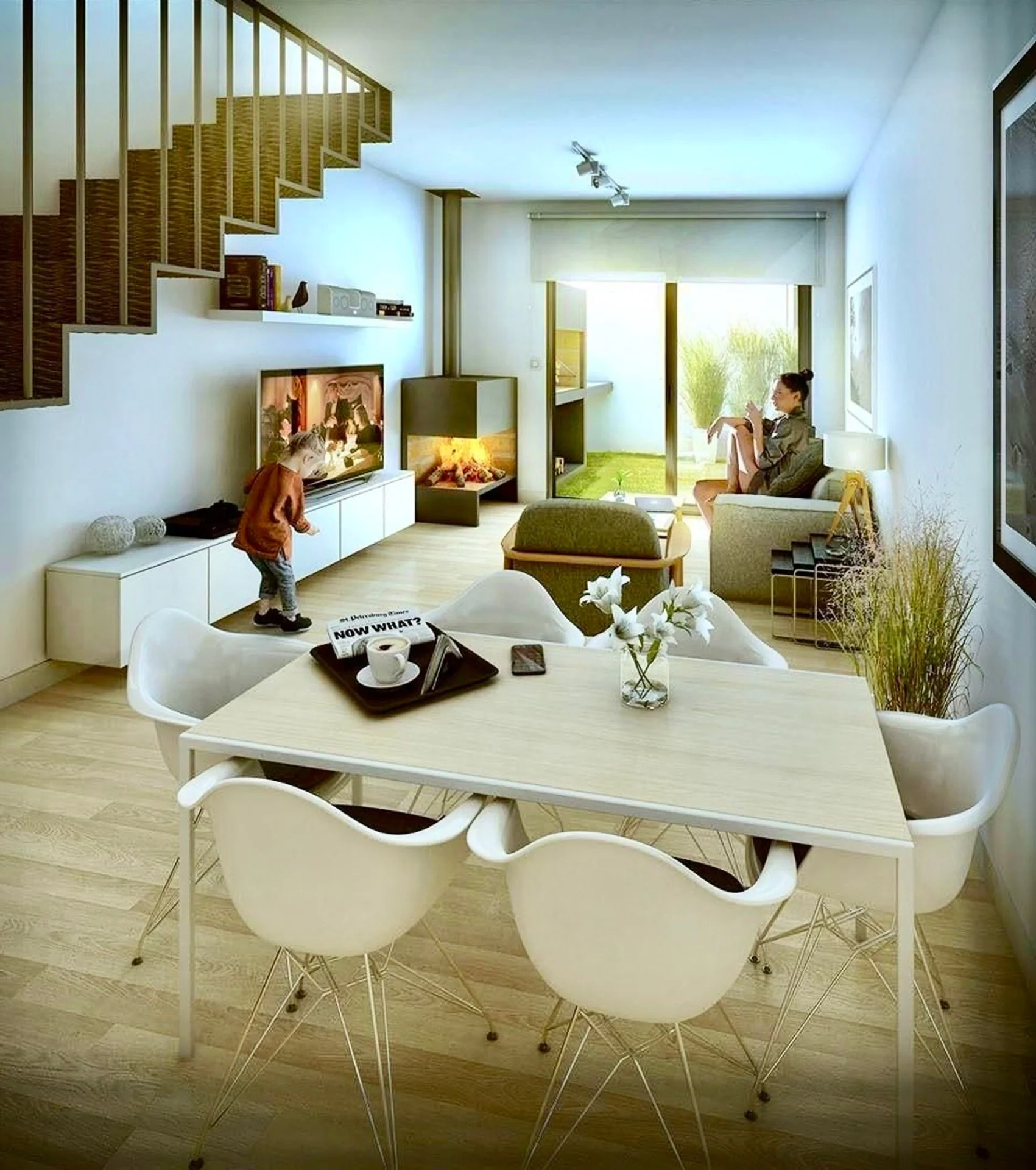 Living comedor con estufa de alto rendimiento.