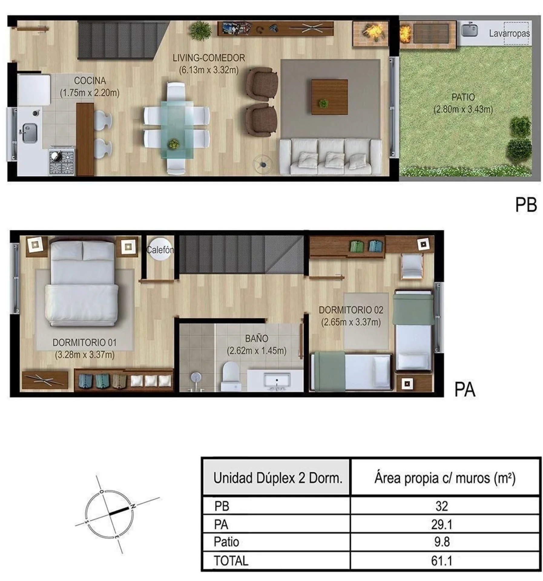 Cocina integrada, 2 amplios dormitorios.