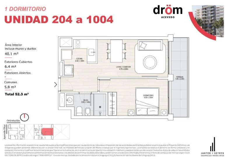 Se vende un elegante apartamento de 1 dormitorio en DROM Acevedo, un proyecto moderno ubicado en uno de los puntos más estratégicos de Montevideo. Situado sobre Acevedo Díaz esquina Ana Monterroso de Lavalleja, este desarrollo se encuentra en pleno corazón de la ciudad, a metros de Av. 18 de Julio, muy próximo al Shopping Tres Cruces y al Parque Batlle, una zona con excelente movilidad, servicios y vida urbana.