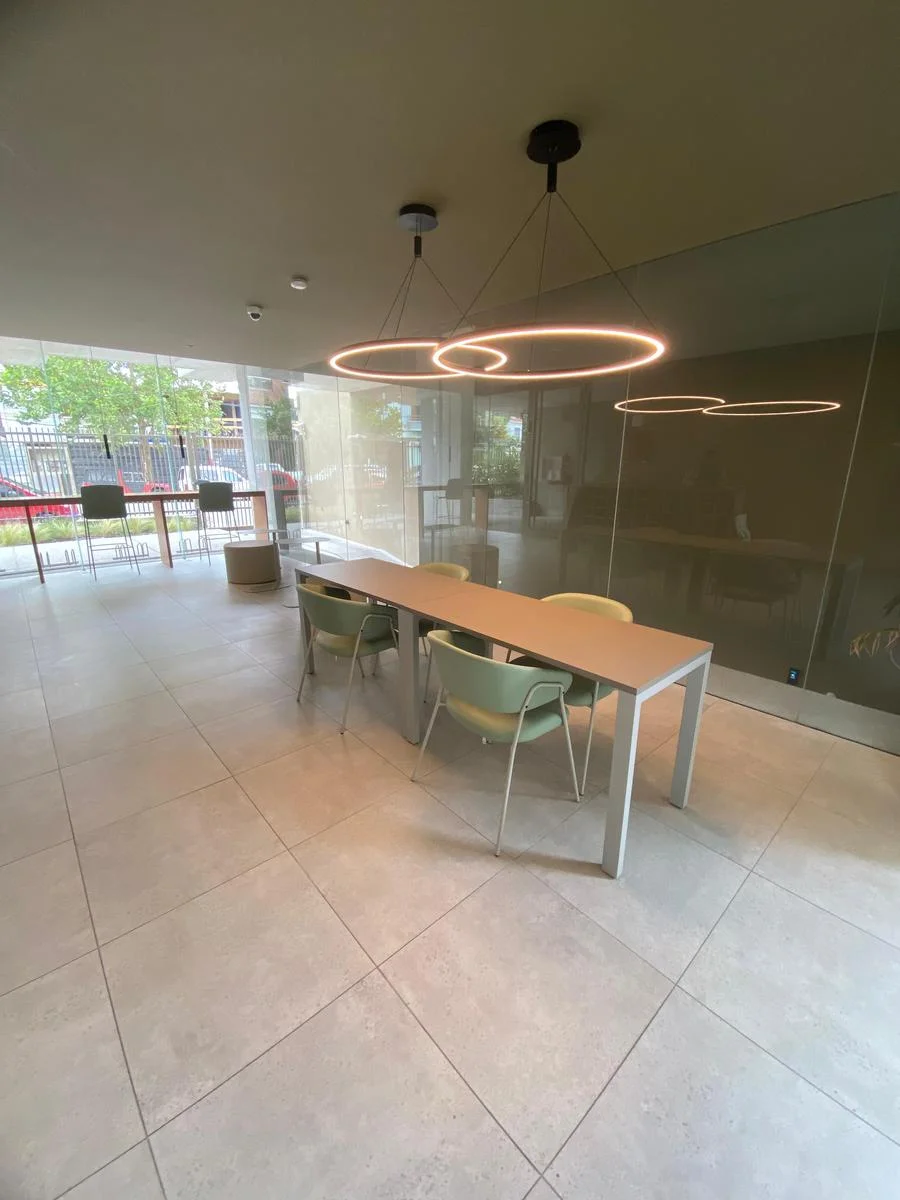 El edificio se destaca por su enfoque sustentable y tecnológico, incorporando cerraduras electrónicas, control de iluminación y cortinas, sensores de movimiento y tecnología bluetooth en áreas comunes. Además, cuenta con preinstalaciones para aire acondicionado, lavarropas y termotanque, junto con terminaciones de calidad como aberturas de aluminio, pisos vinílicos en cocina con mesadas de granito y baños con porcelanato y equipamiento de primera línea.
