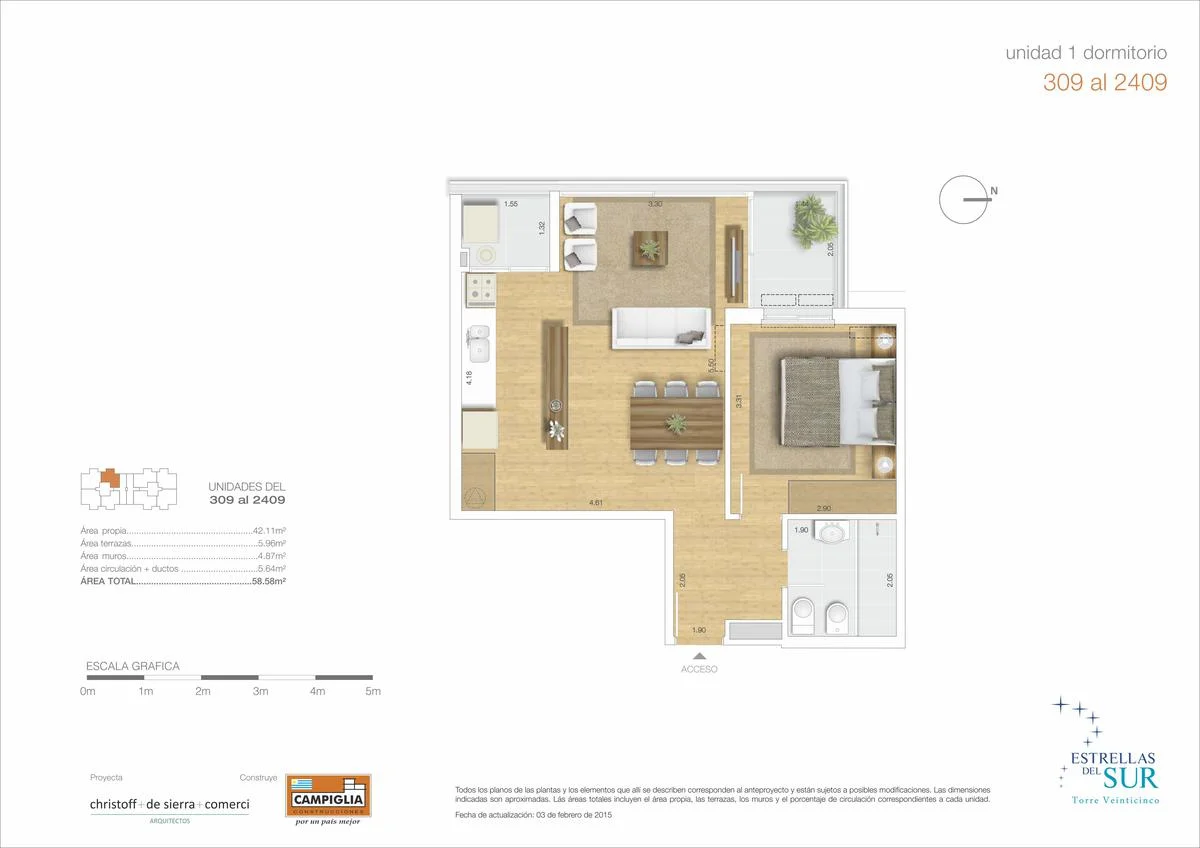Aire acondicionado en el living y previsión en dormitorio.