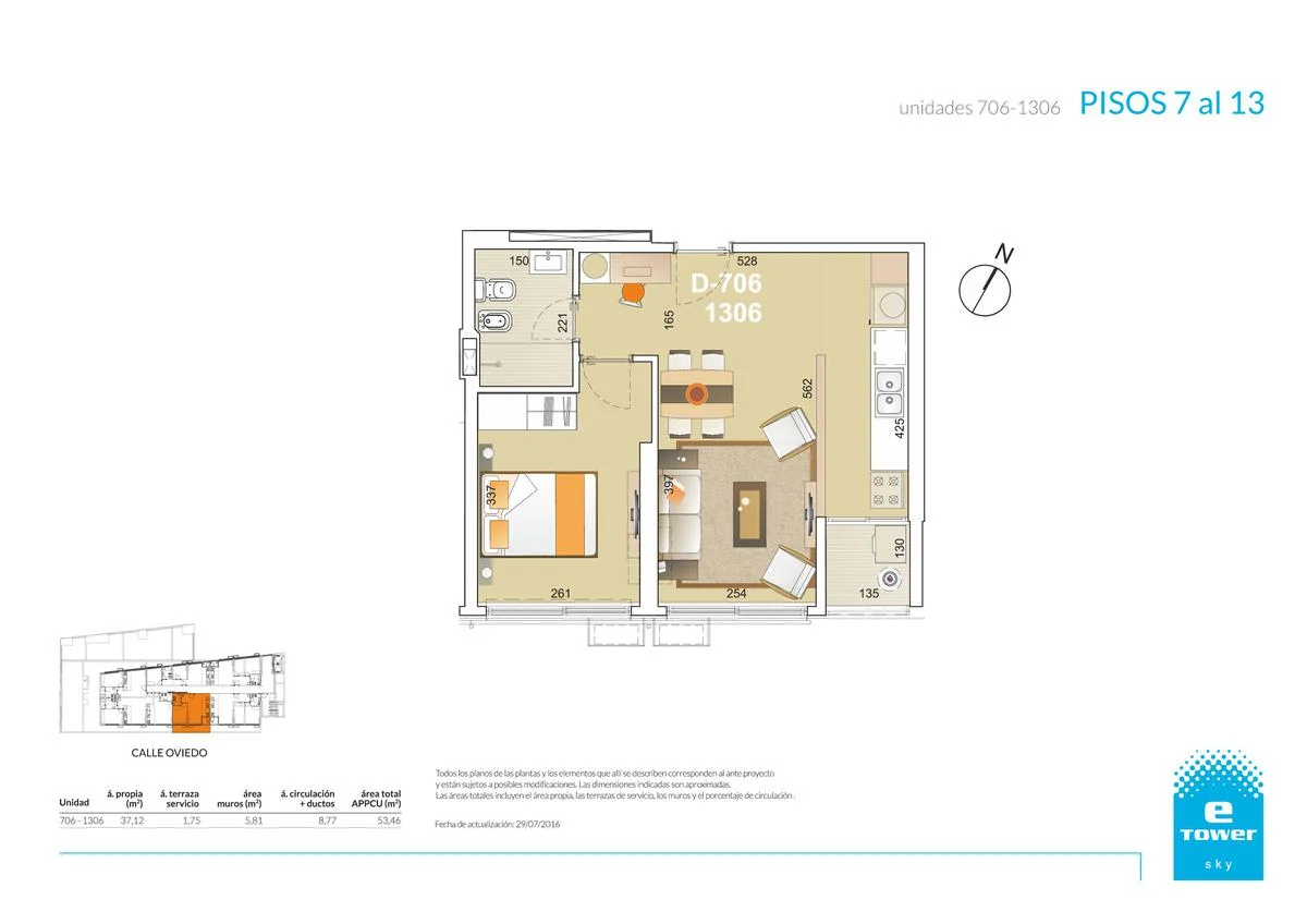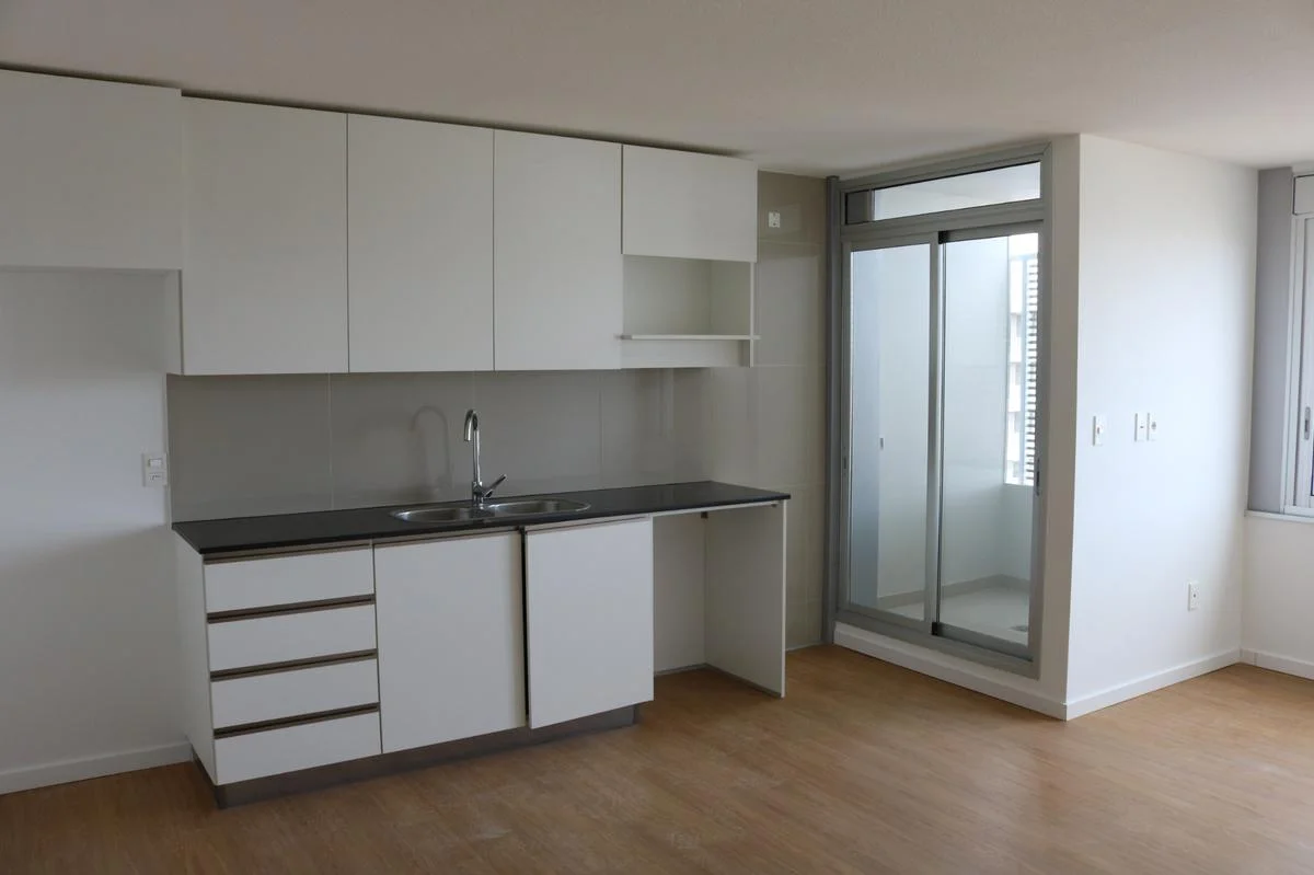 12vo. piso, vistas despejadas hacia la costa. Living comedor con aire acondicionado, cocina integrada con muebles aéreos, bajo mesada y doble bacha, terraza de servicio. 1 dormitorio con placar y aire acondicionado. Baño completo con mueble bajo bacha y espejo con botiquín.
