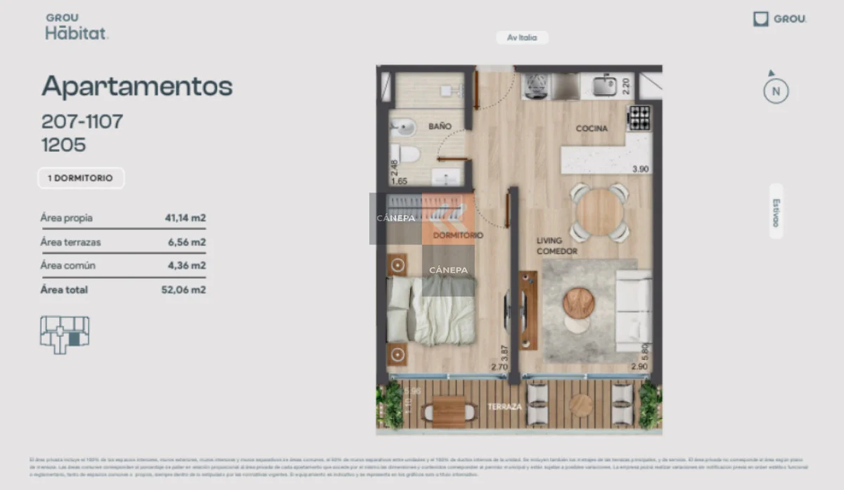 Living comedor con salida balcón Cocina integrada 1 dormitorio con salida a balcón 1 baño completo Edificio cuenta con: SUM con parrillero, gimnasio, lavadero, parrilleros, playroom, recepción. Referencia Interna : Tera-16341