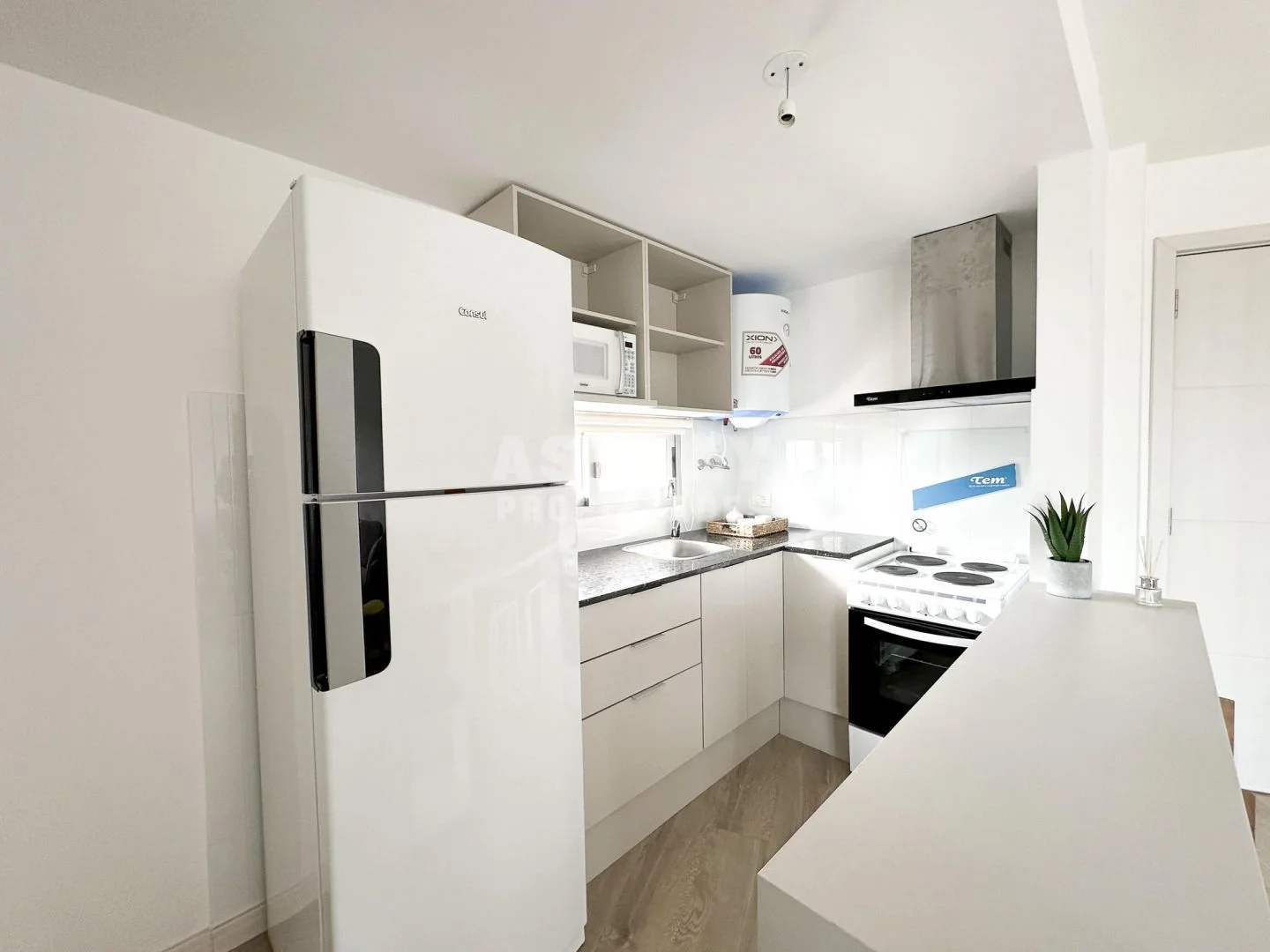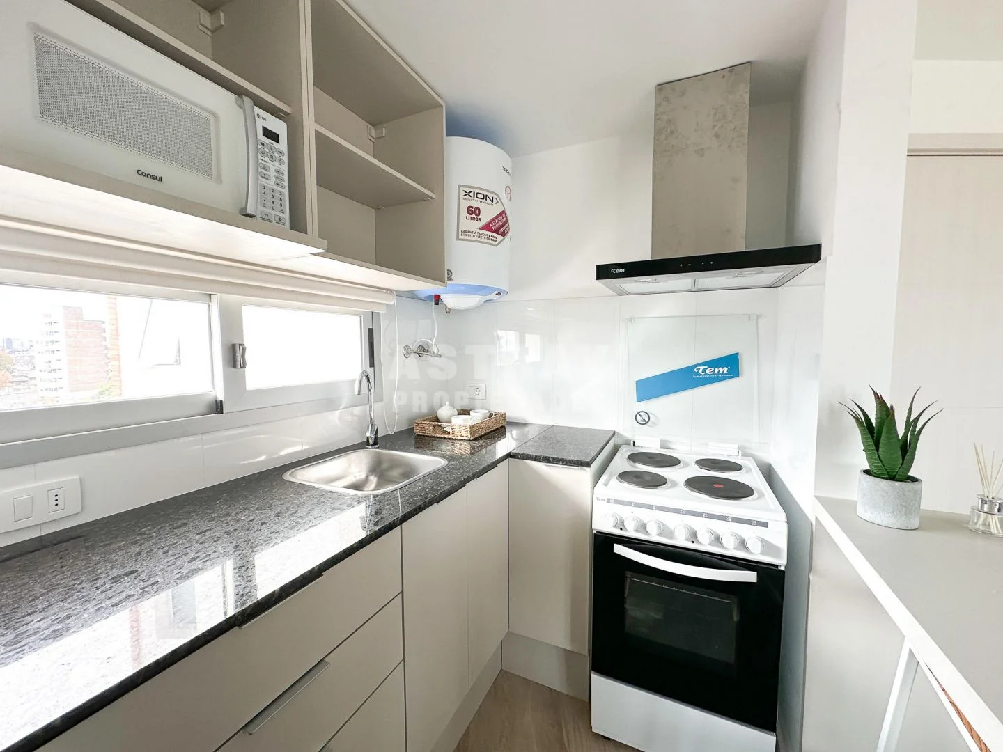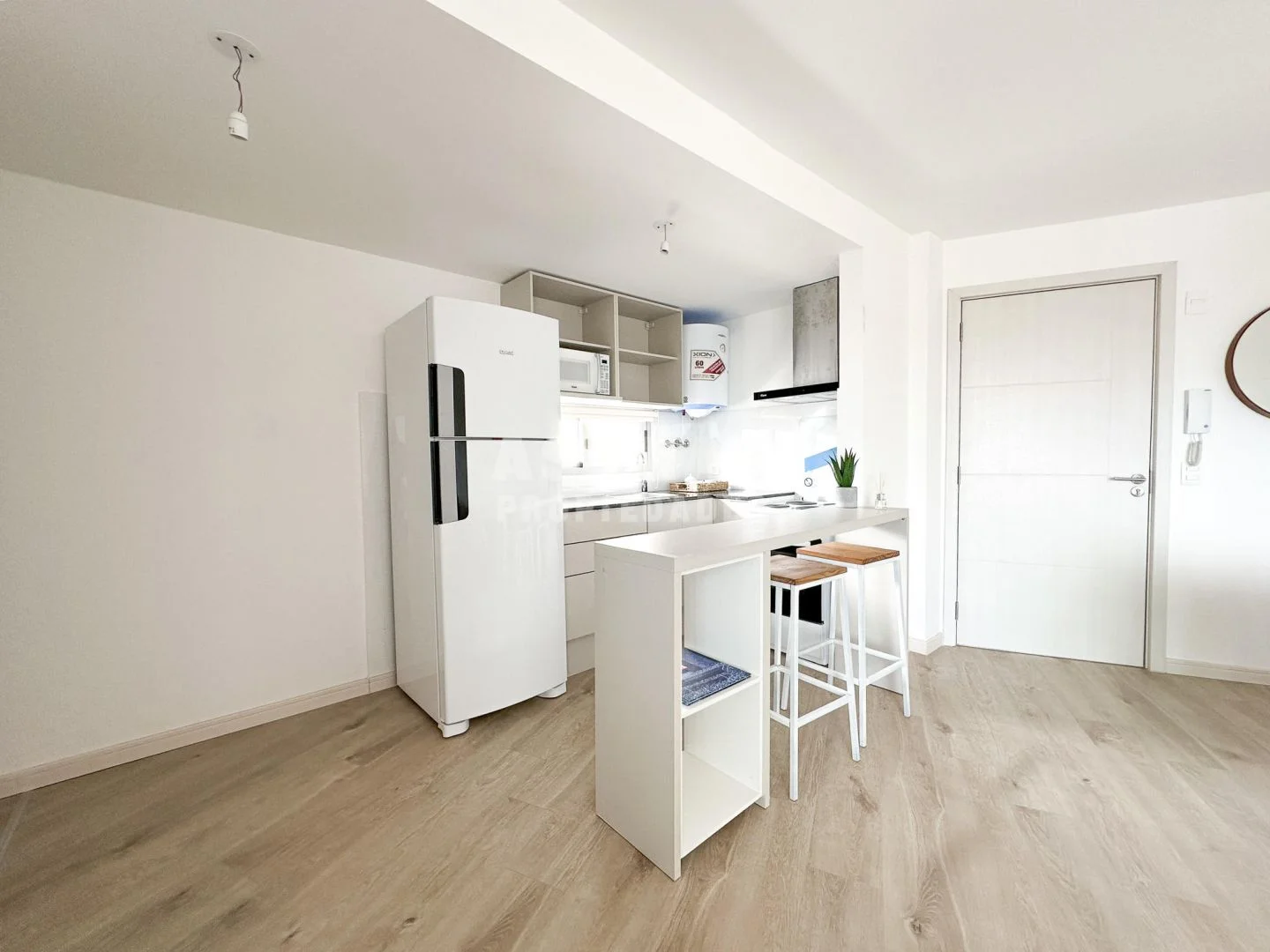 Living comedor con cocina semi integrada, equipada con termotanque y cocina.