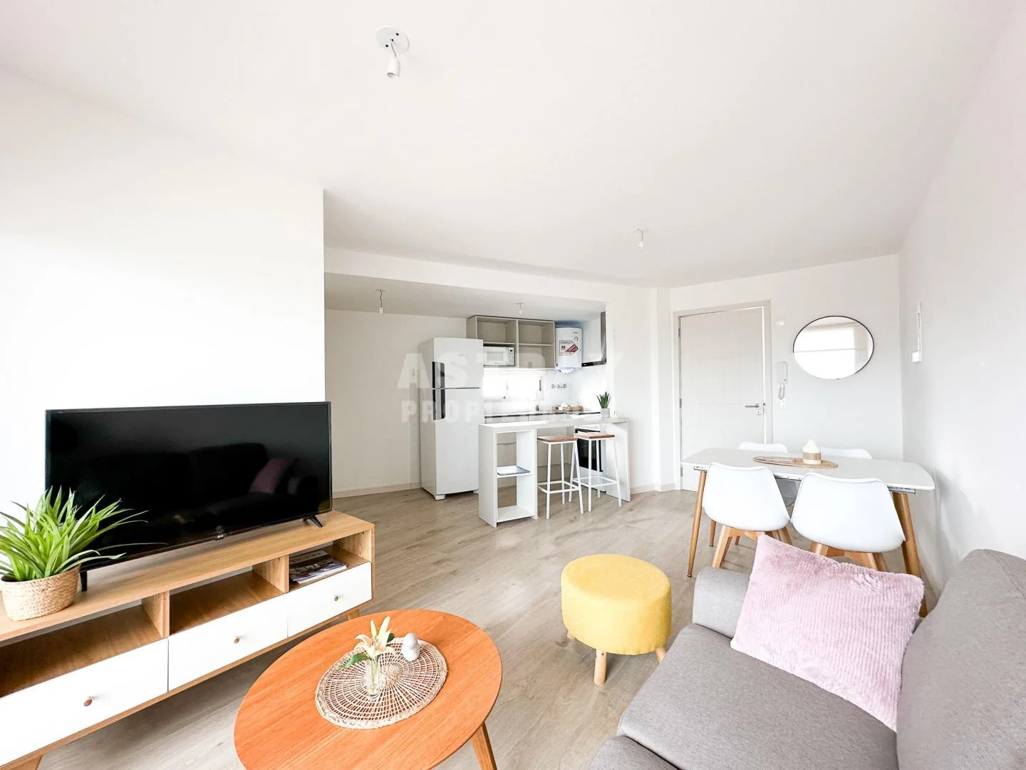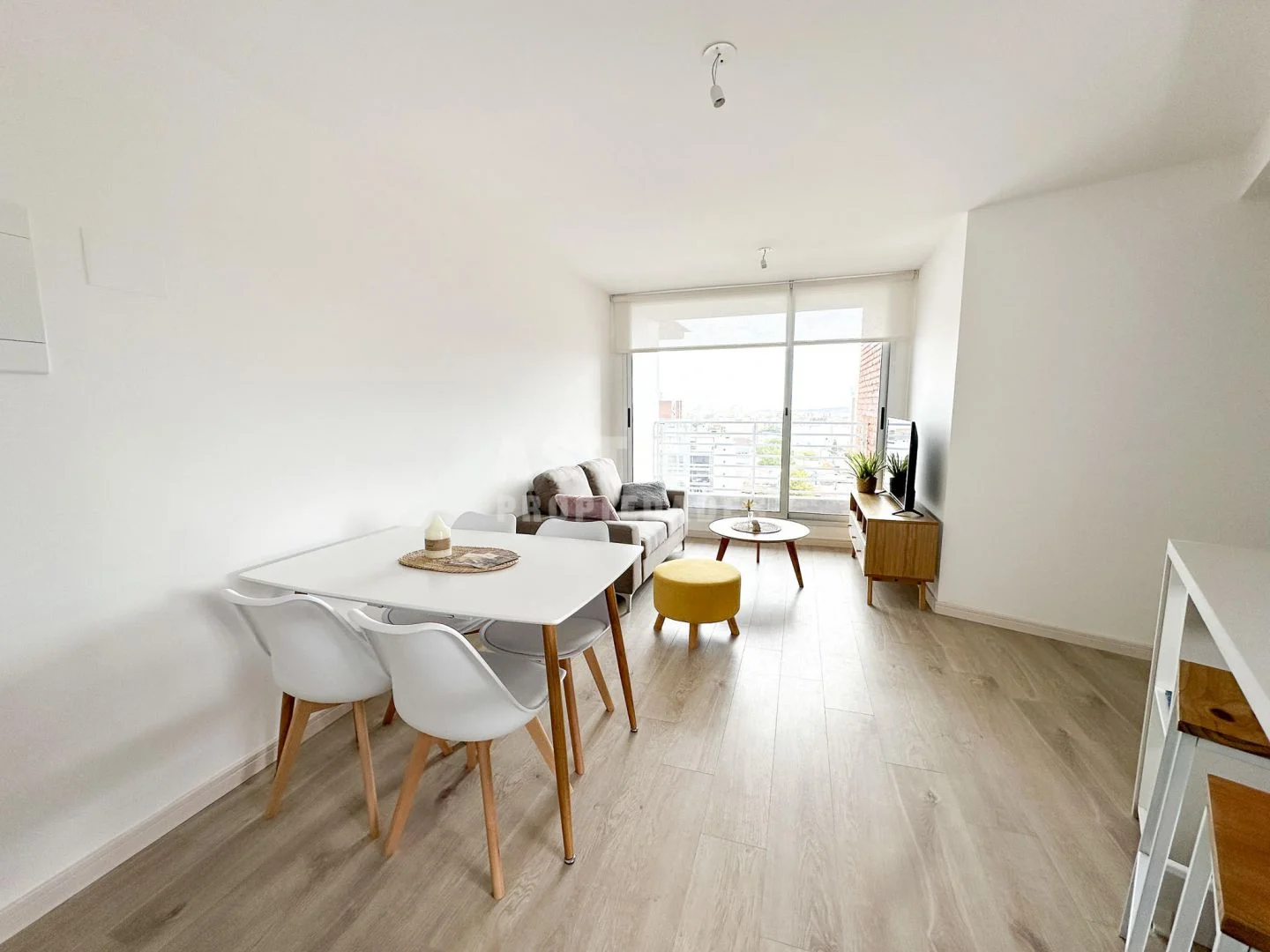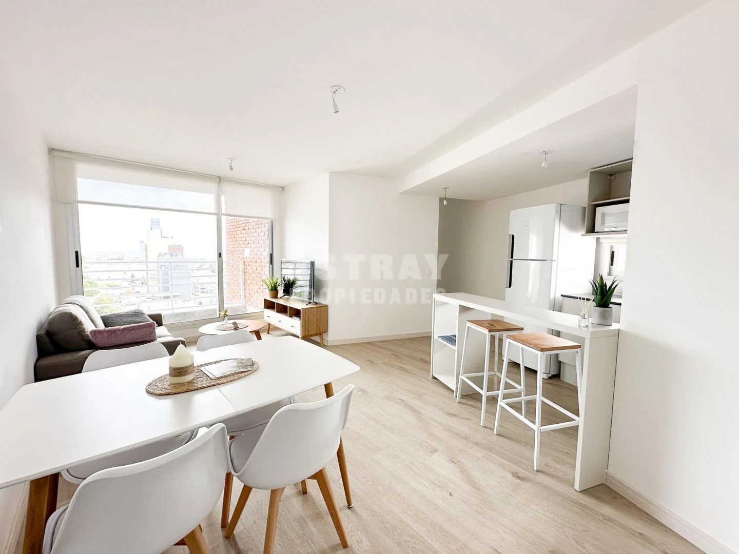 Living comedor con cocina semi integrada, equipada con termotanque y cocina.