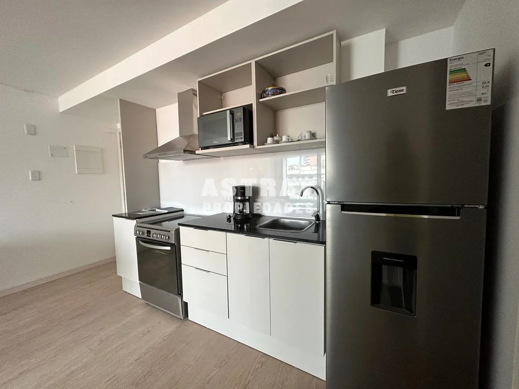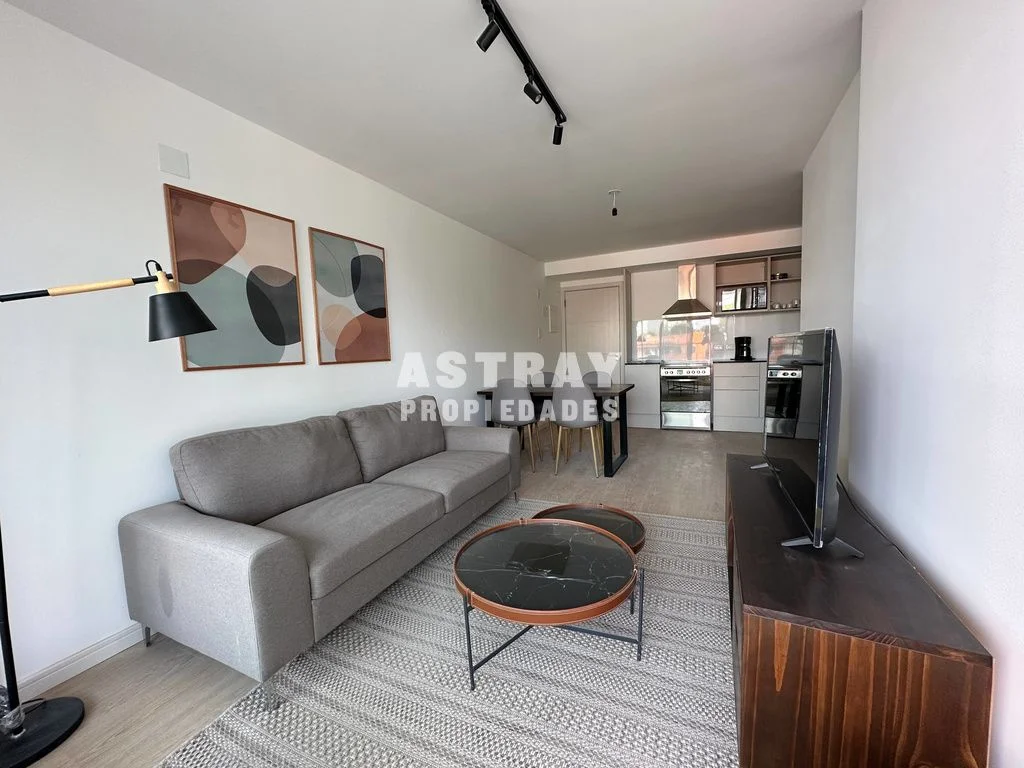 Living comedor con cocina semi integrada.