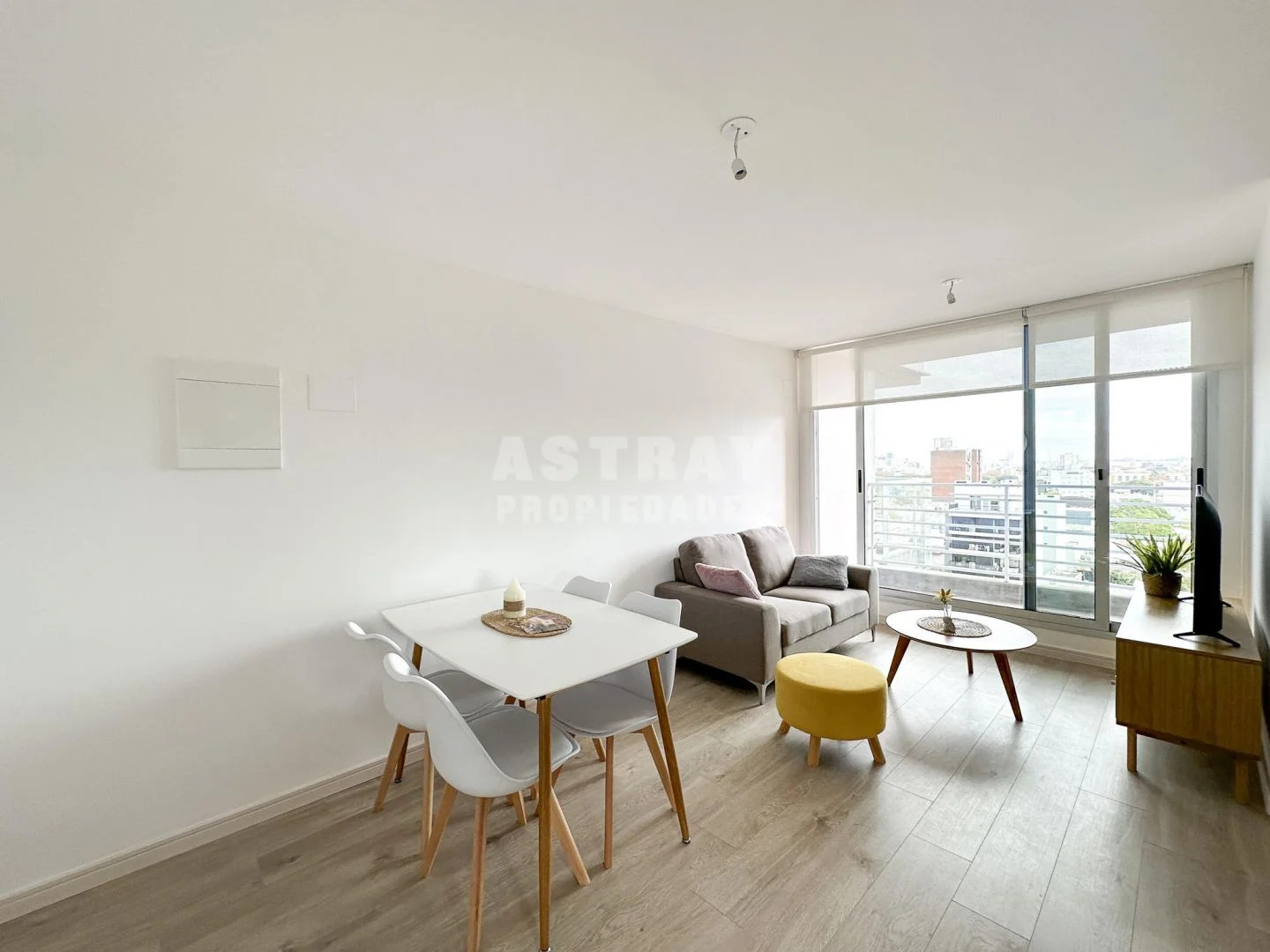 Living comedor con cocina semi integrada, equipada con termotanque y cocina.