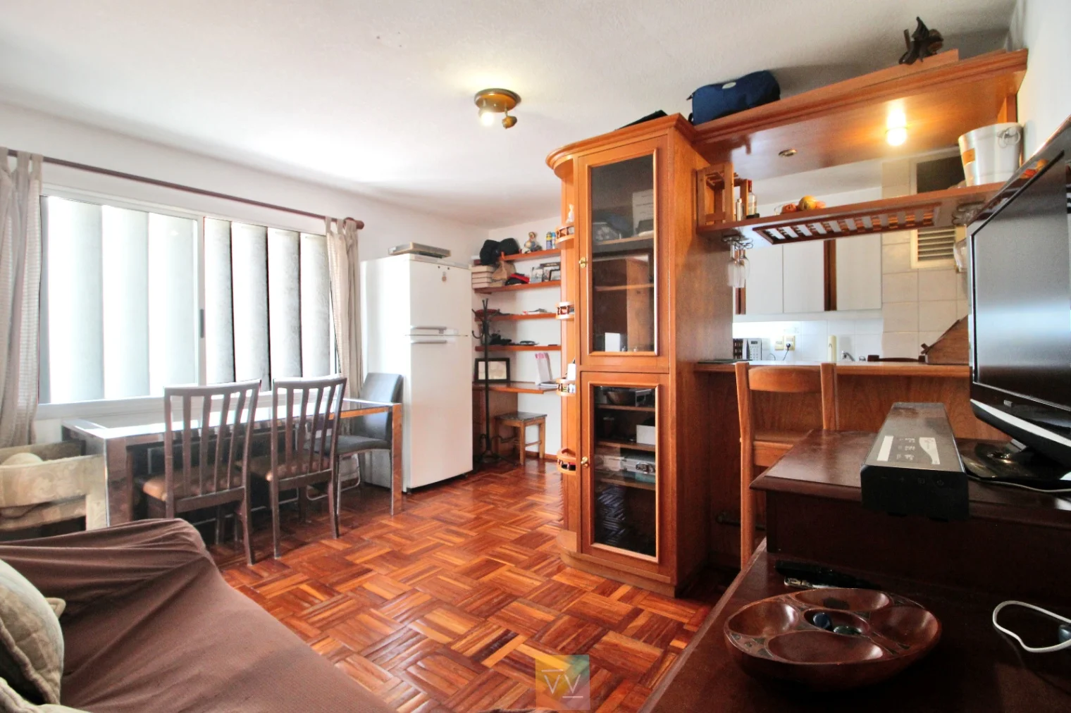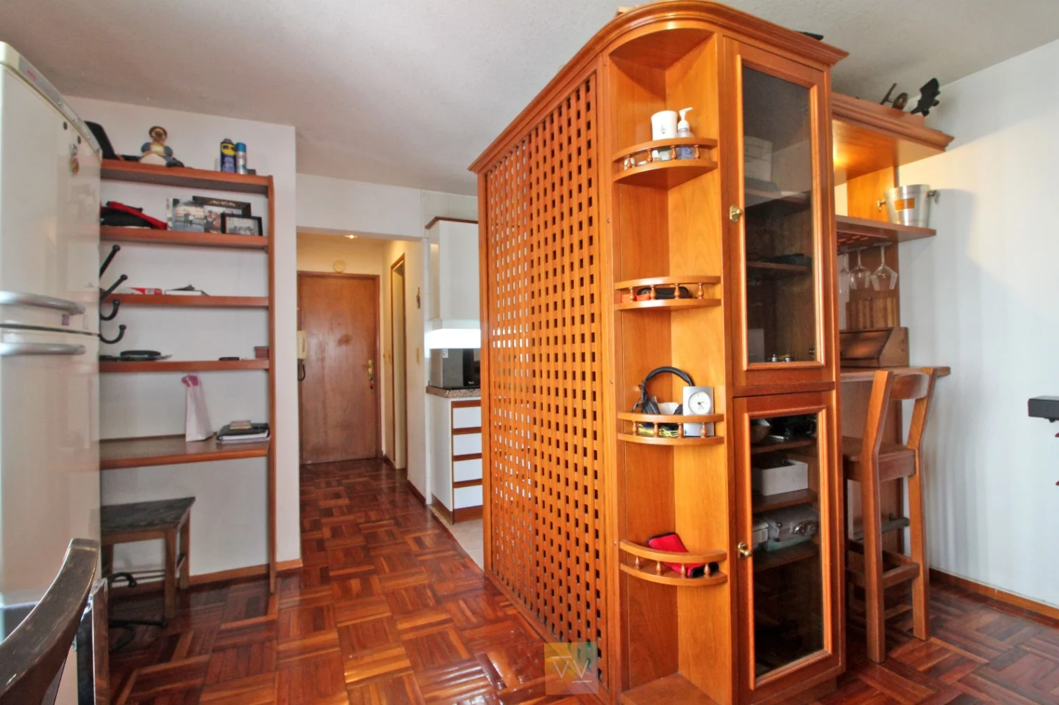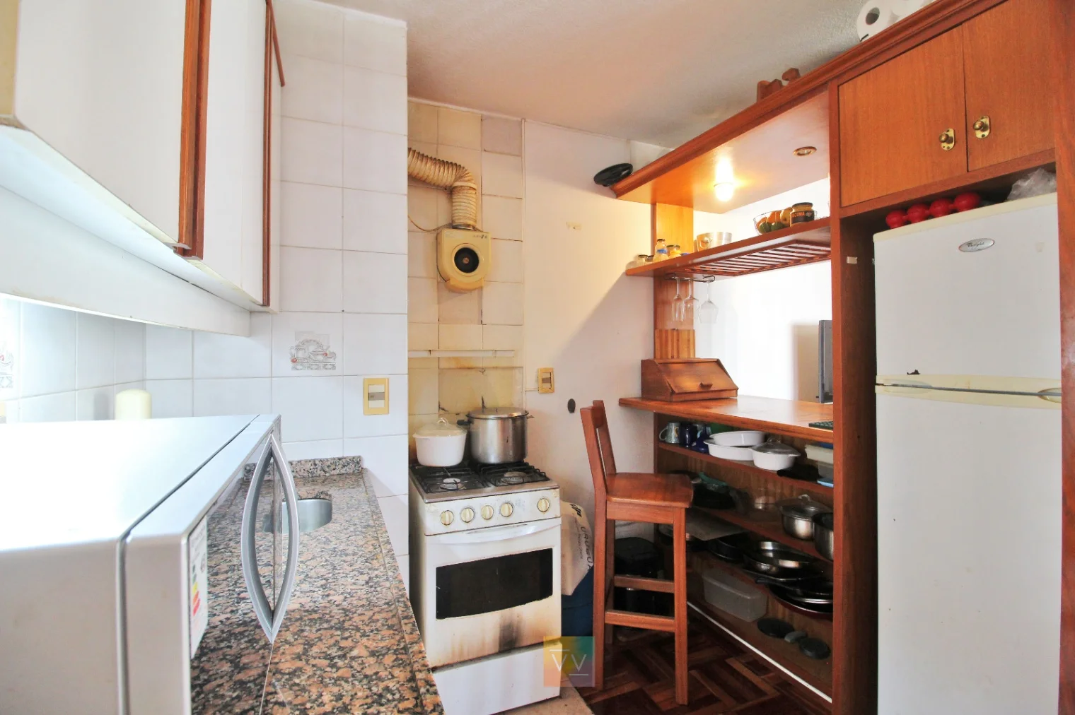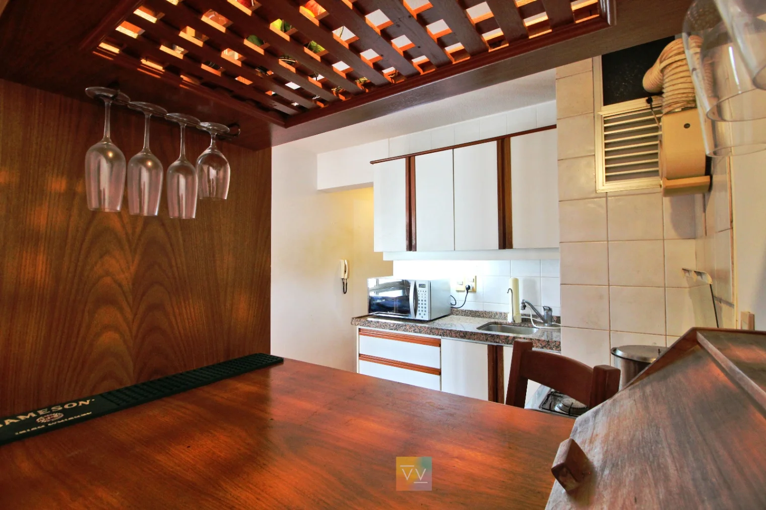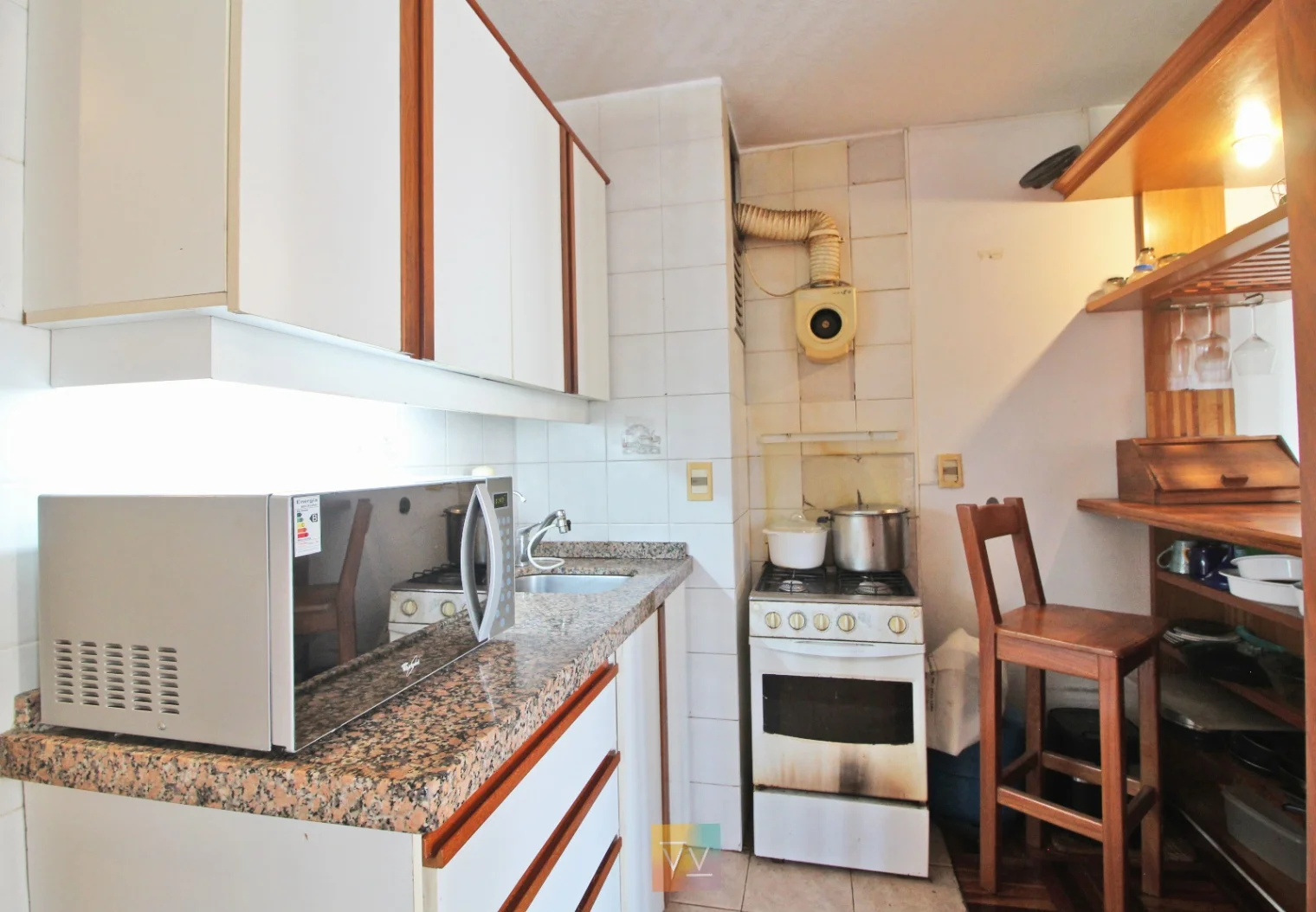 La cocina integrada se presenta con mobiliario funcional y terminaciones de calidad, posee un mueble hecho a medida con barra desayunador que divide el espacio living - comedor generando mayor privacidad al ambiente.