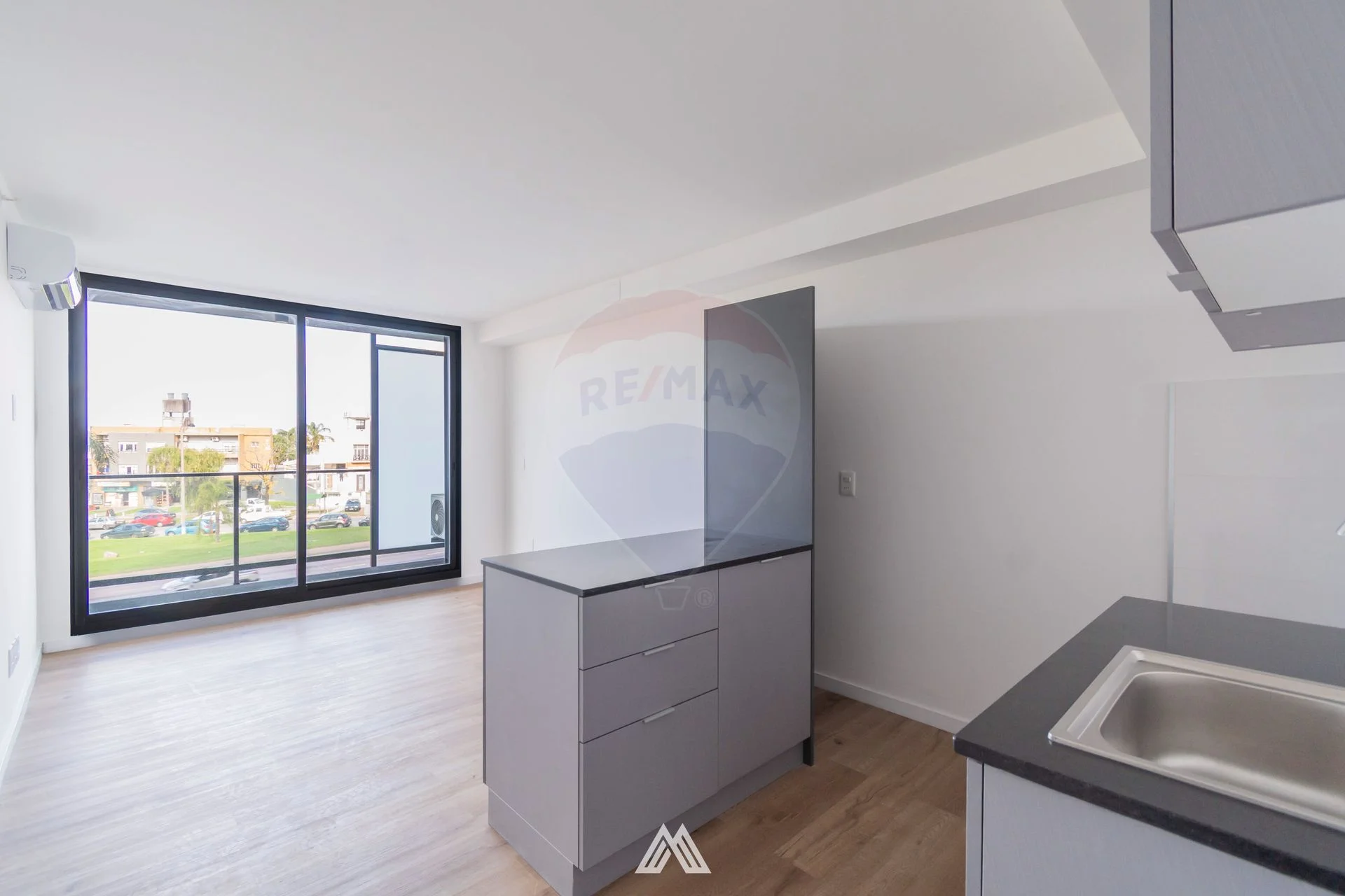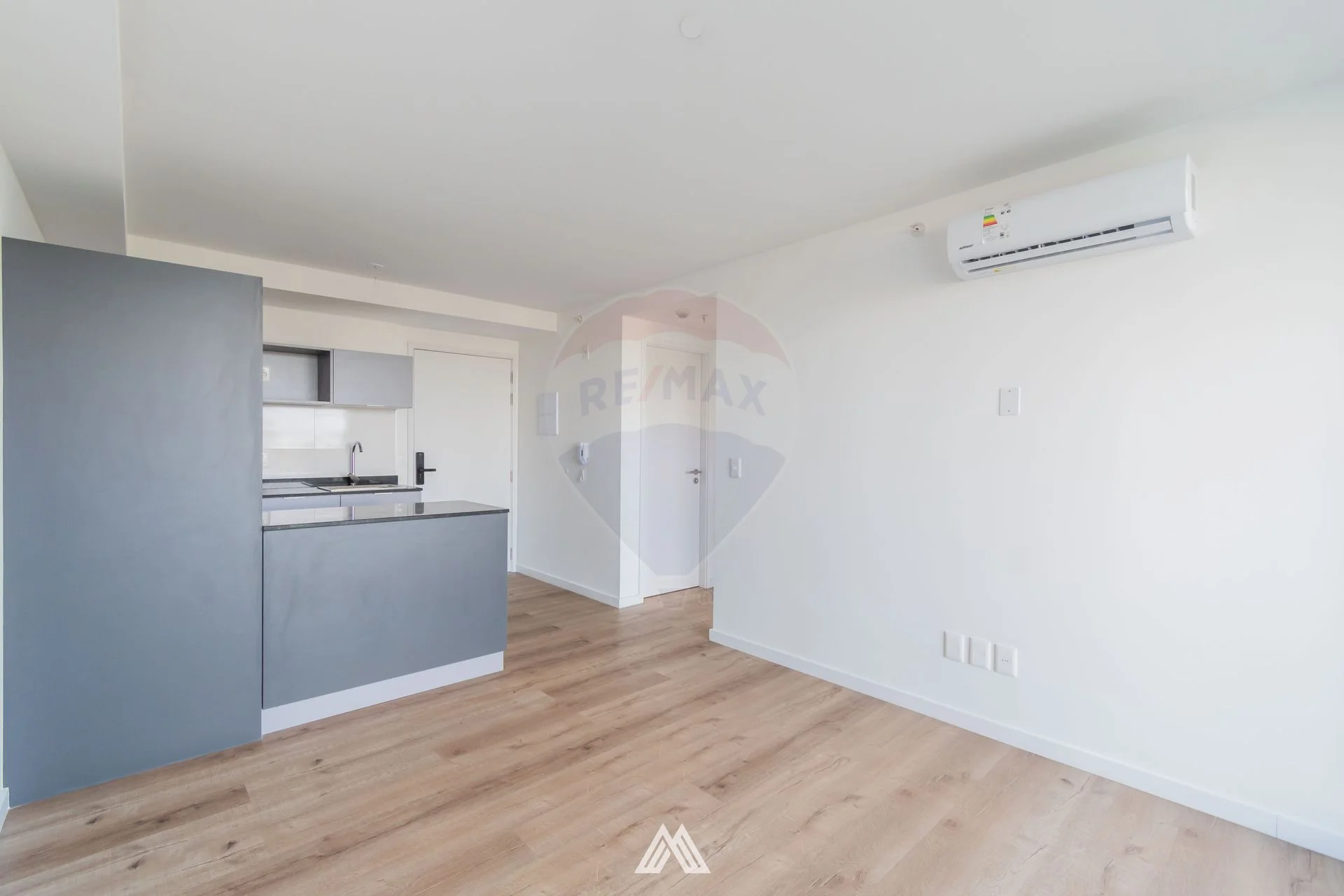 El apartamento cuenta con cerradura electrónica con acceso mediante código, tarjeta o huella. Living comedor con salida a terraza. Cocina integrada con doble mesada de granito color negro, muebles aéreos y bajo mesada con terminación melamínica. Dormitorio con persiana de aluminio. Baño completo con mueble bajo pileta, espejo y columna de ducha. Pisos de listones vinílicos de alto tránsito símil madera. Aberturas de aluminio color negro. Aire acondicionado en living comedor y previsión en el dormitorio.