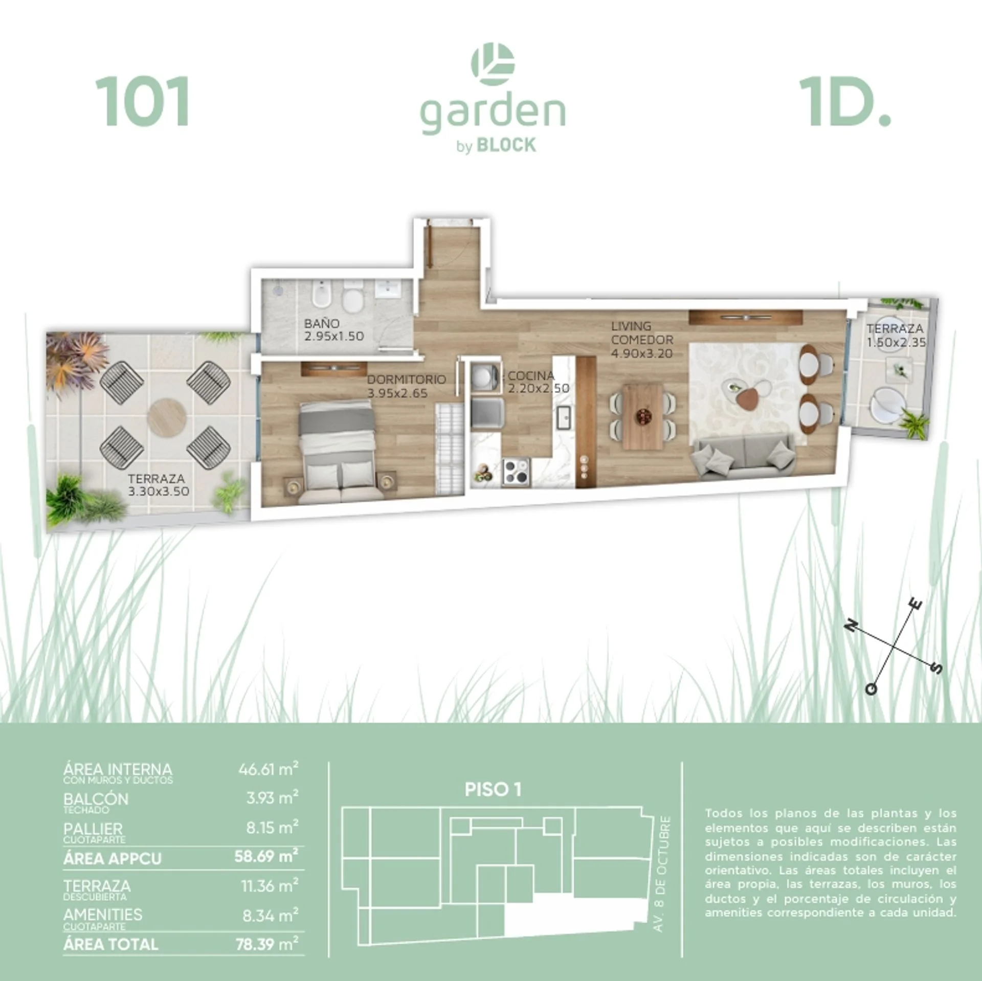 Garden by Block, ubicado en Av 8 de octubre a pasos de la Av. Luis A. de Herrera, punto estratégico de la ciudad rodeado de Hospitales y Universidades.