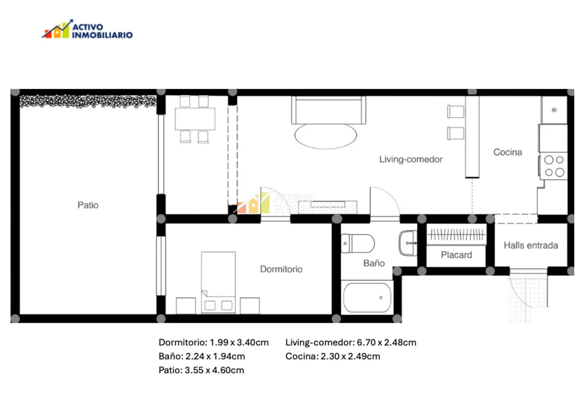 Posee 53m² totales, distribuidos de la siguiente forma: