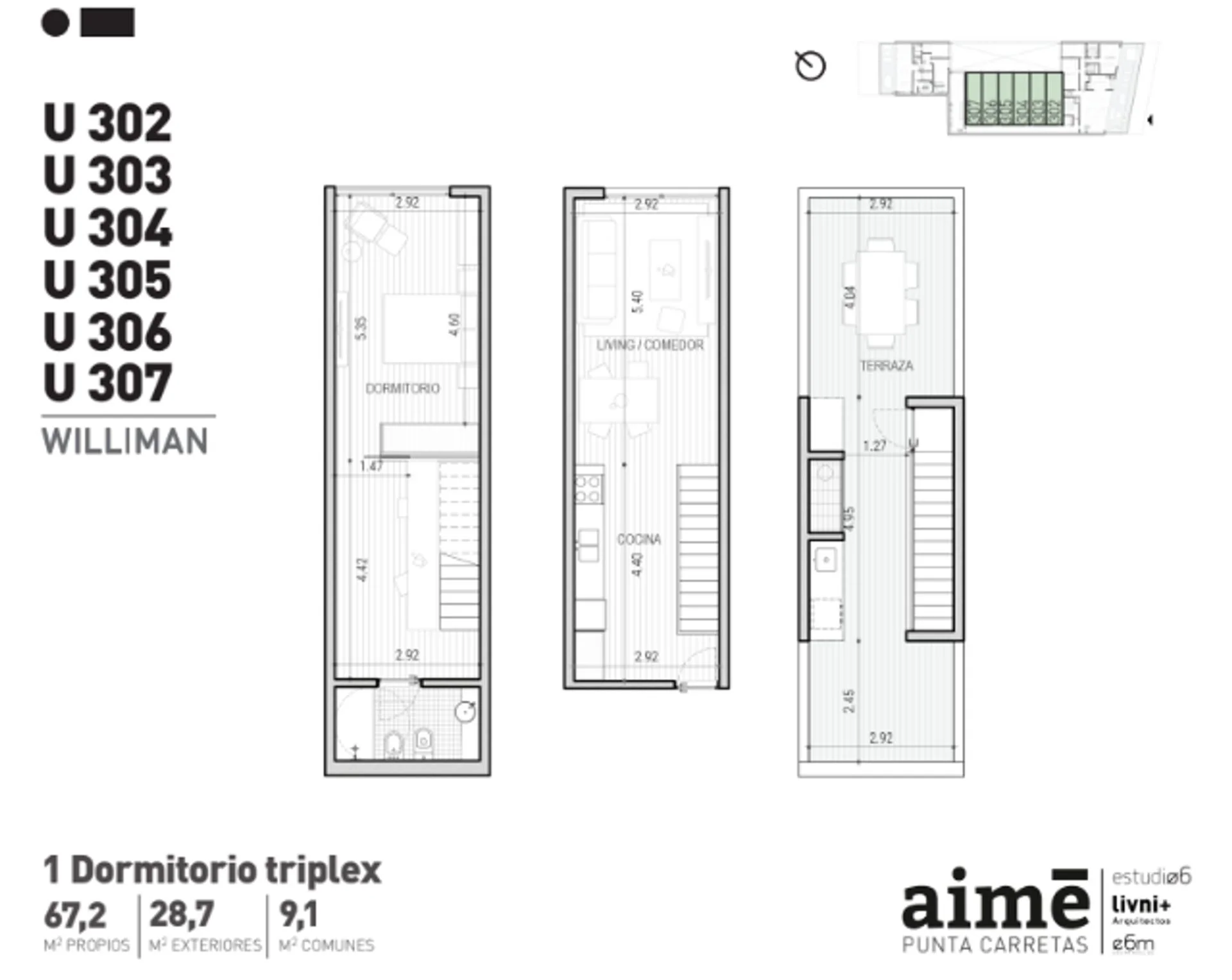 El proyecto desarrolla 31 unidades, contando con confortables tipologías MONOAMBIENTE, 1-2-3 DORMITORIOS tradicionales y en DUPLEX con expansión a terrazas y patios privados, privilegiando