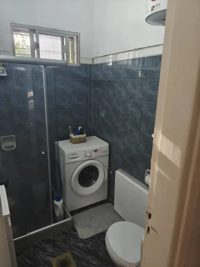 . Baño con mampara de vidrio, termotanque y conexión para lavarropas