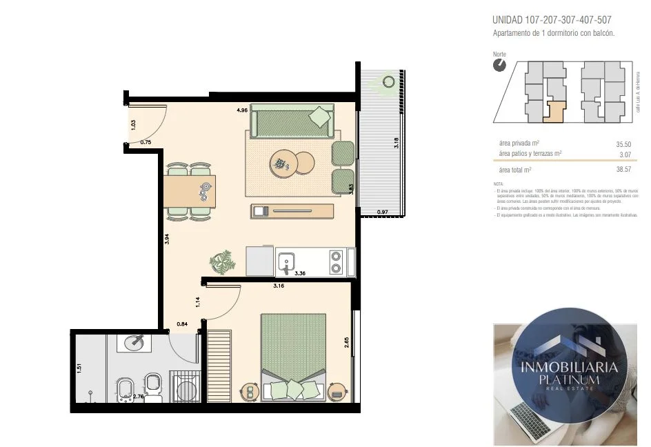 Este encantador apartamento en venta totalmente amoblado en Luis Alberto de Herrera, La Blanqueada, se presenta como una oportunidad única para quienes buscan comodidad y modernidad en un entorno urbano. Con un precio desde U$D 135000, esta propiedad destaca por su diseño funcional y sus acabados de alta calidad. Con una superficie total de 35 m² cubiertos y 25 m² descubiertos (las que cuentan con patio, las que tienen balcón 3 m2) , el inmueble cuenta con una disposición lateral que proporciona privacidad y tranquilidad.