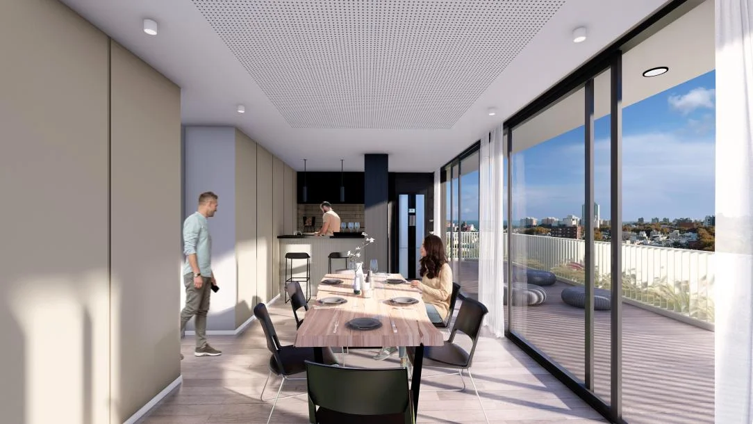 El proyecto incluye una amplia gama de amenities para disfrutar al máximo: gimnasio equipado, salones de uso común, terrazas ajardinadas, un playroom para niños y una moderna barbacoa con vistas. Además, su ubicación estratégica combina un entorno vibrante, rodeado de bares, comercios y universidades, con excelente conectividad al resto de la ciudad.