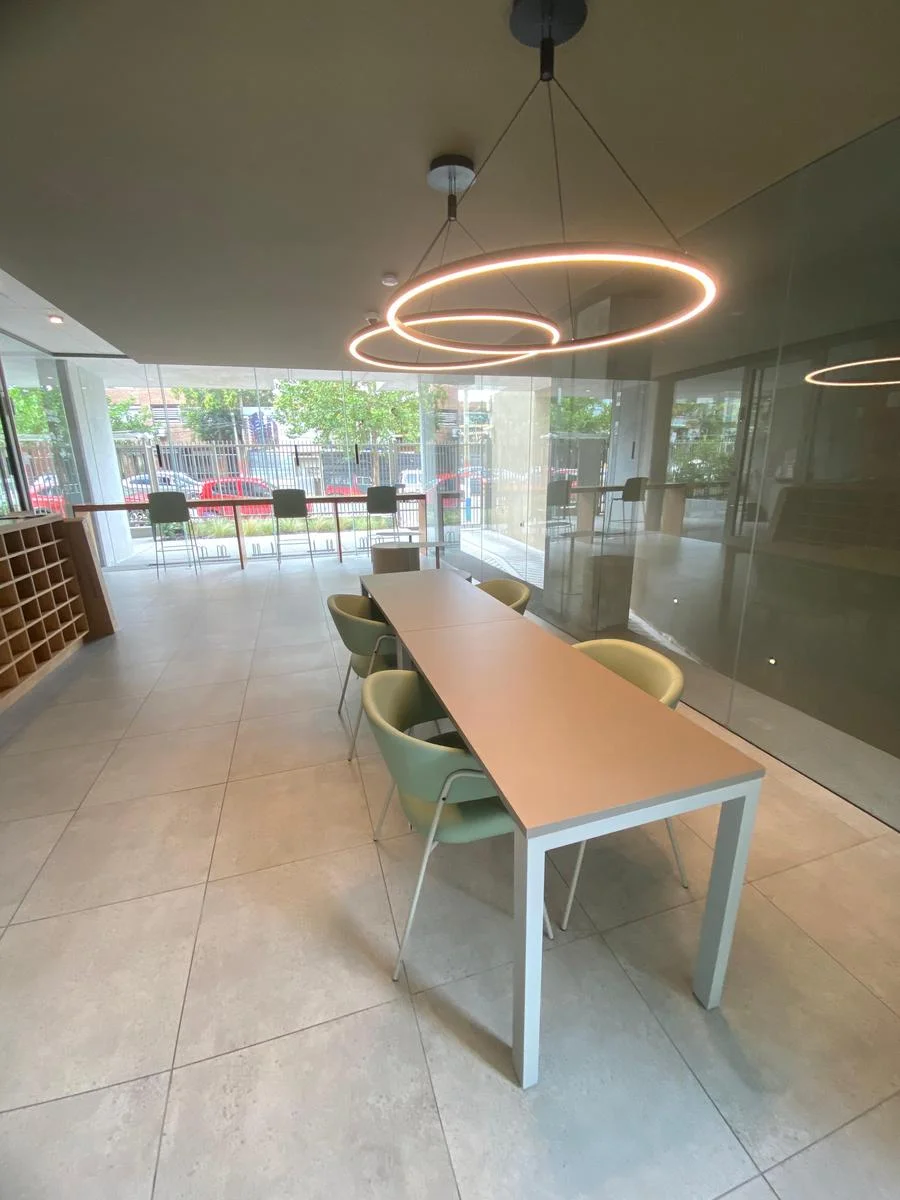 El edificio se destaca por su enfoque sustentable y tecnológico, incorporando cerraduras electrónicas, control de iluminación y cortinas, sensores de movimiento y tecnología bluetooth en áreas comunes. Además, cuenta con preinstalaciones para aire acondicionado, lavarropas y termotanque, junto con terminaciones de calidad como aberturas de aluminio, pisos vinílicos en cocina con mesadas de granito y baños con porcelanato y equipamiento de primera línea.