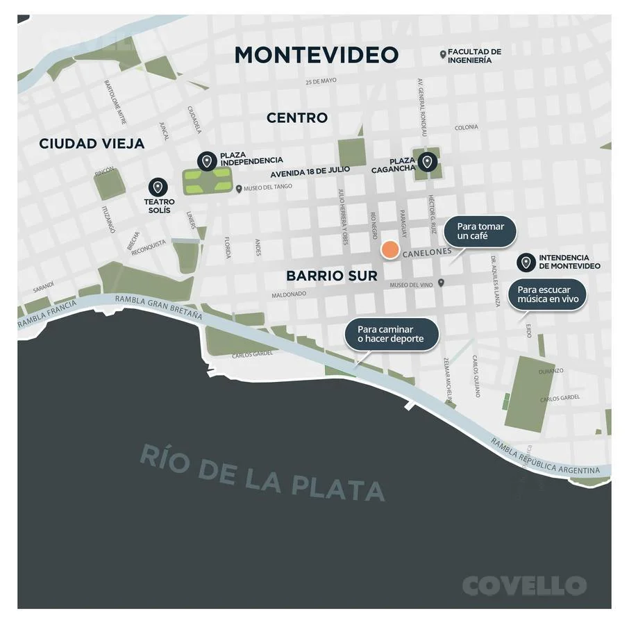 Ubicado en el límite entre Centro y Barrio Sur, a pasos de Av. 18 de Julio y a solo cuatro cuadras de la Rambla, este apartamento a estrenar combina diseño, tecnología y confort en una ubicación estratégica de la ciudad.