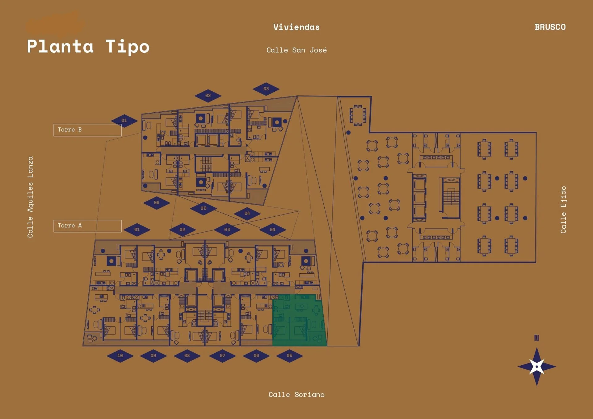 BRUSCO está compuesto por tres torres (dos residenciales y una de oficinas) y un total de 172 apartamentos de vivienda, concebidos con espacios amplios, funcionales y una calidad superior a lo estándar.