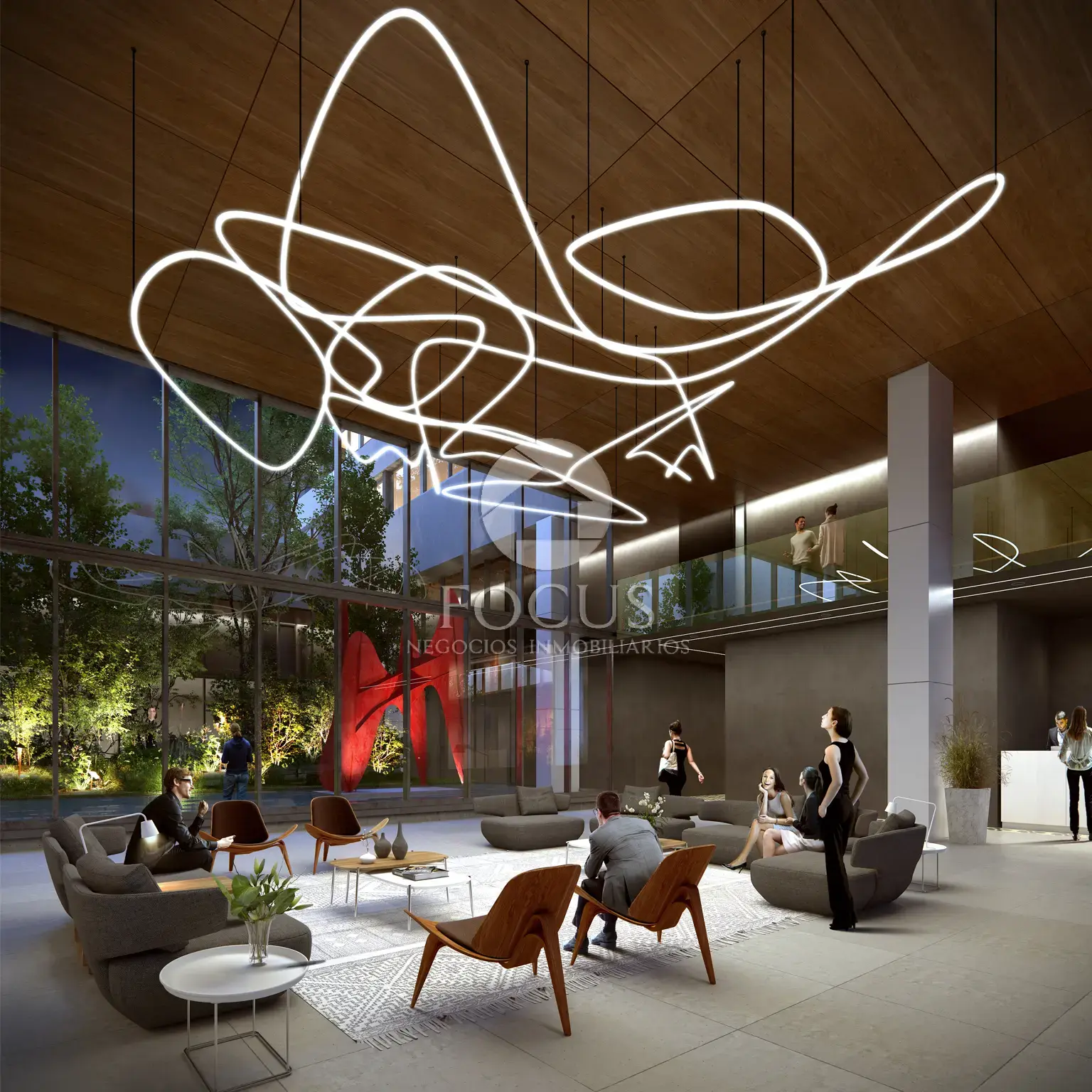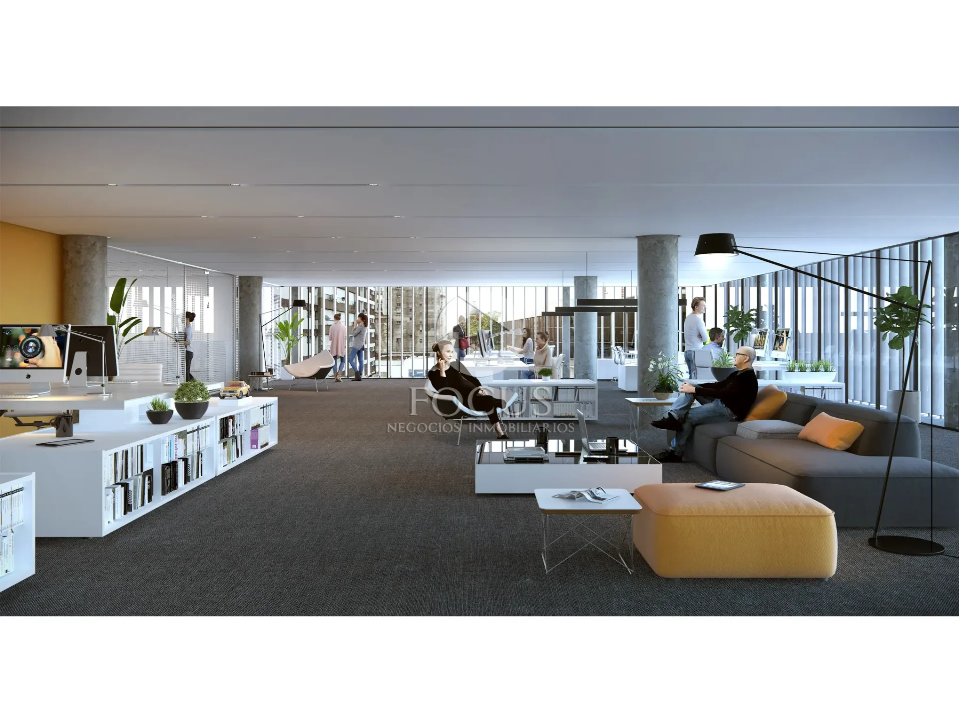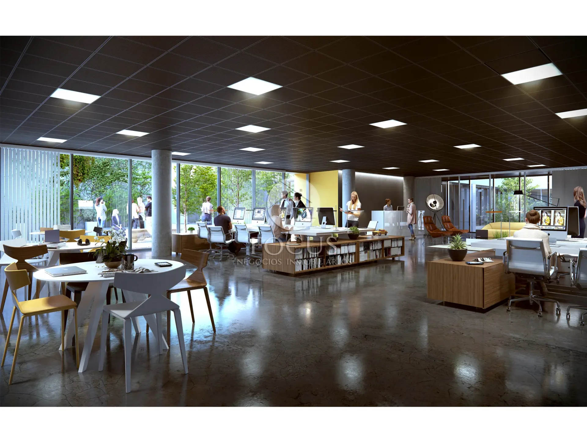 Amplio Hall de acceso, único por su gran tamaño, sectores de usos múltiples y patio interno central con vegetación.