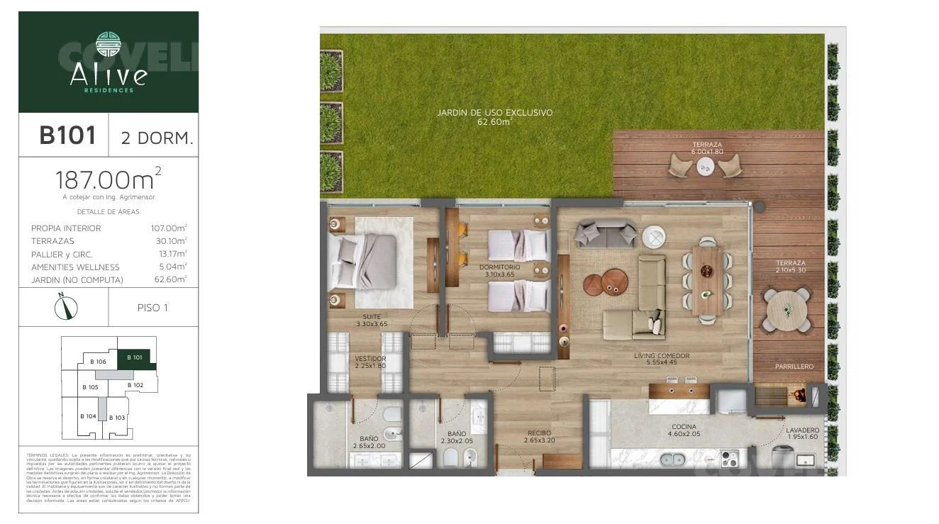 Venta – Apartamento de 2 Dormitorios con jardín exclusivo y Parrillero en Alive Residences, Barrio Parques