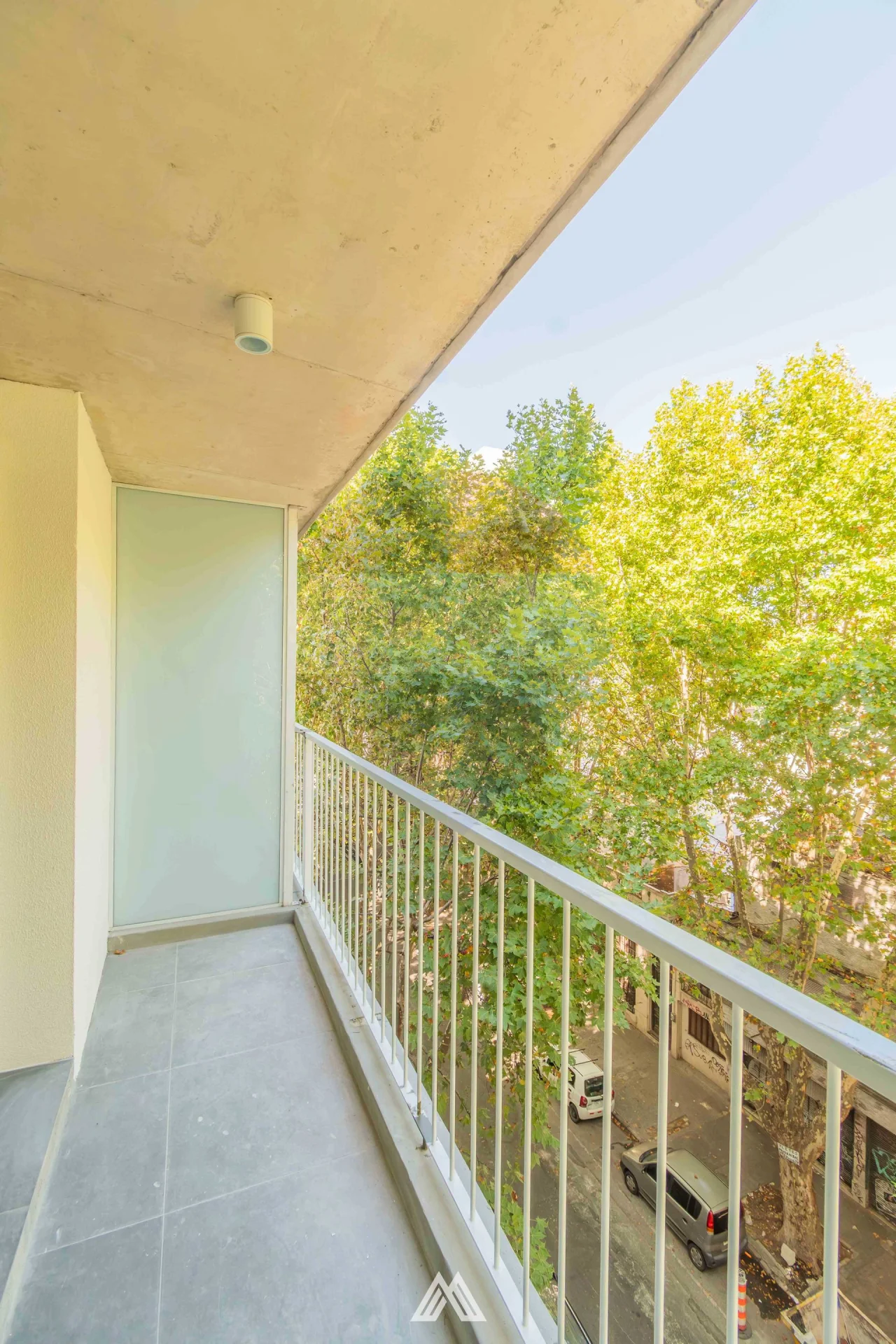 La unidad 102 se encuentra en Nivel 1 y cuenta con doble orientación este-oeste, terraza al frente y amplio patio exclusivo al contrafrente, logrando excelente ventilación cruzada y luminosidad natural.