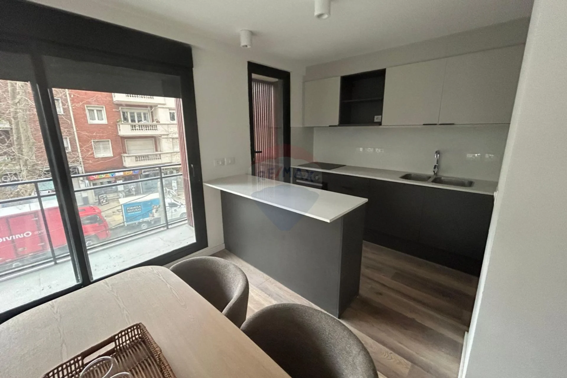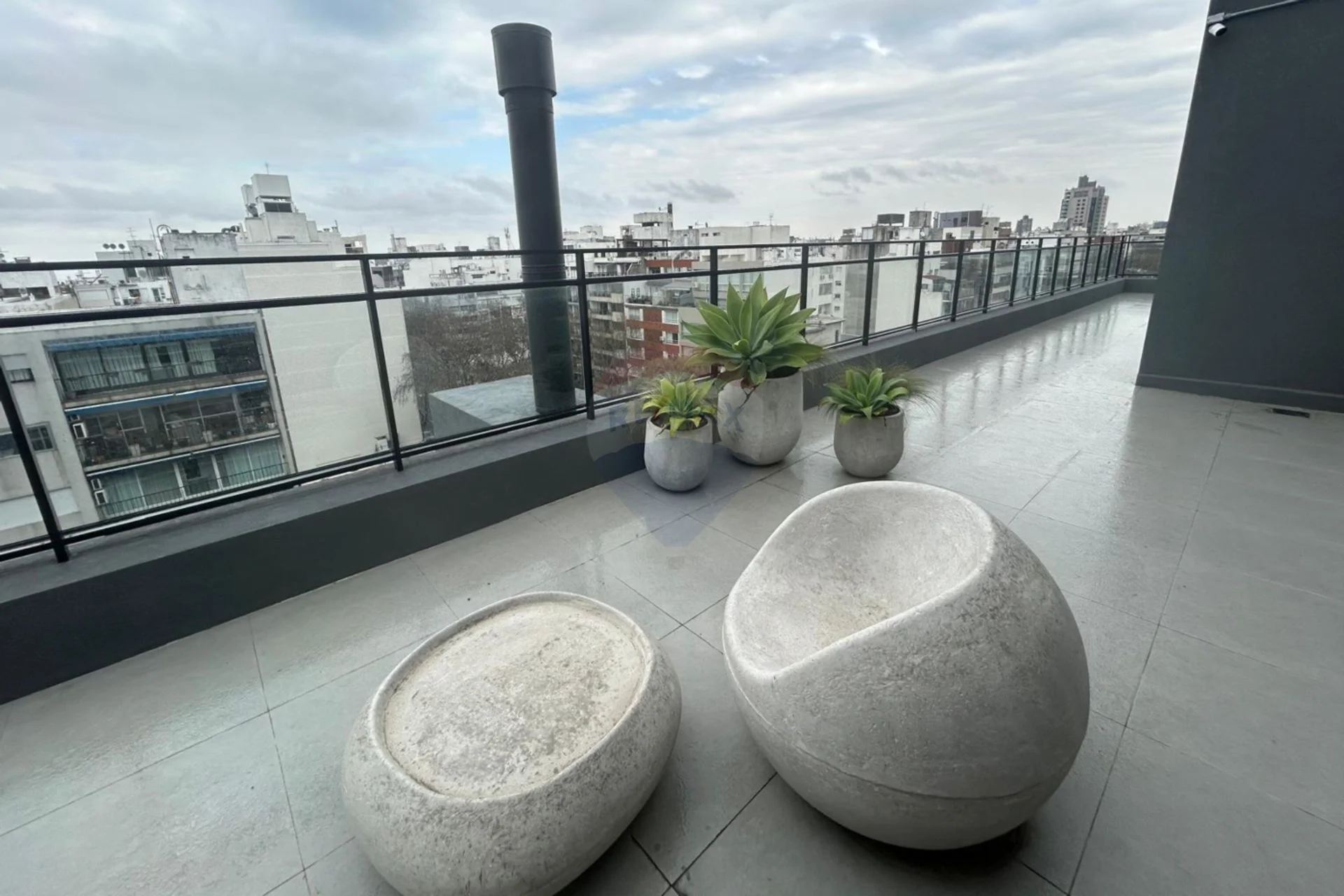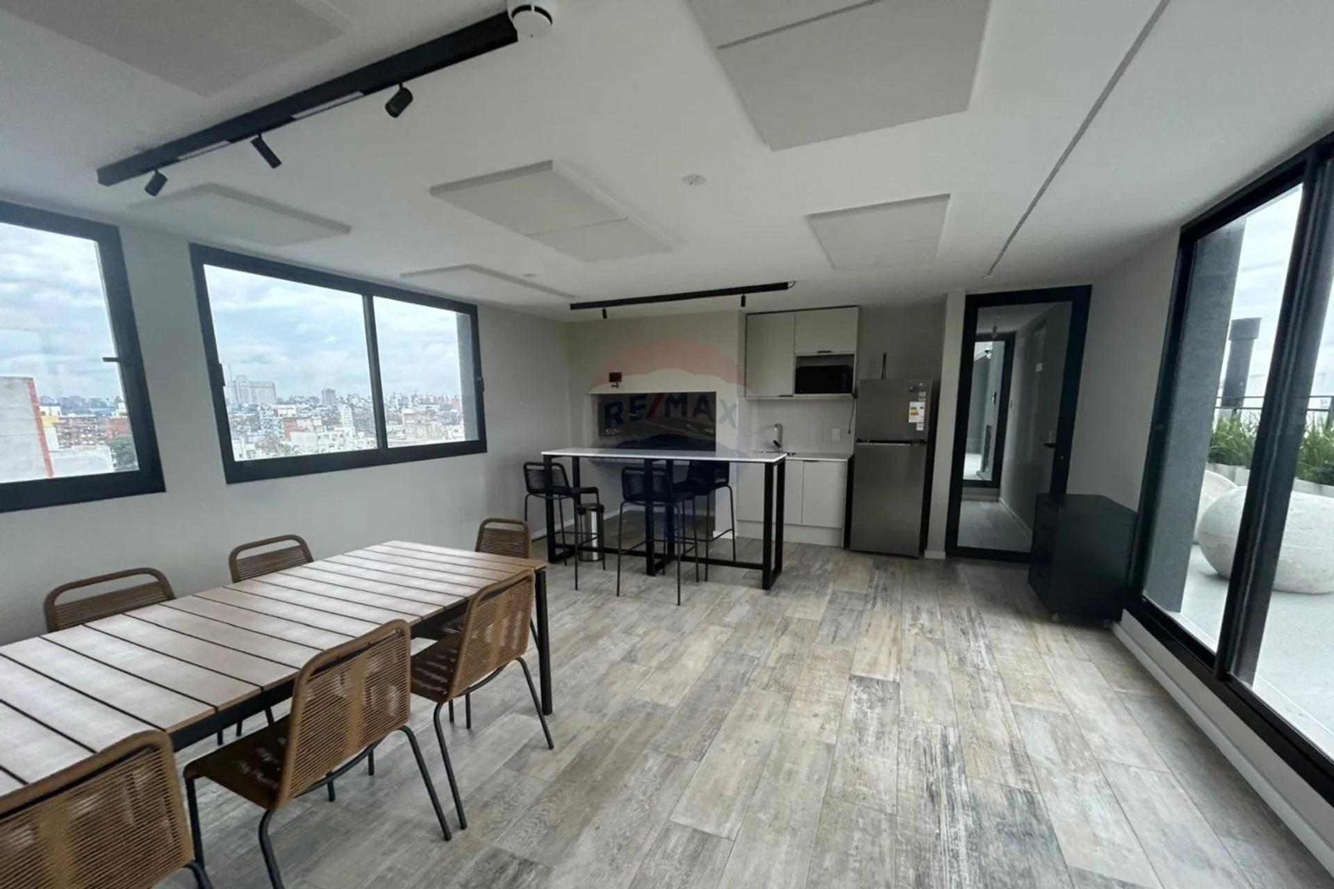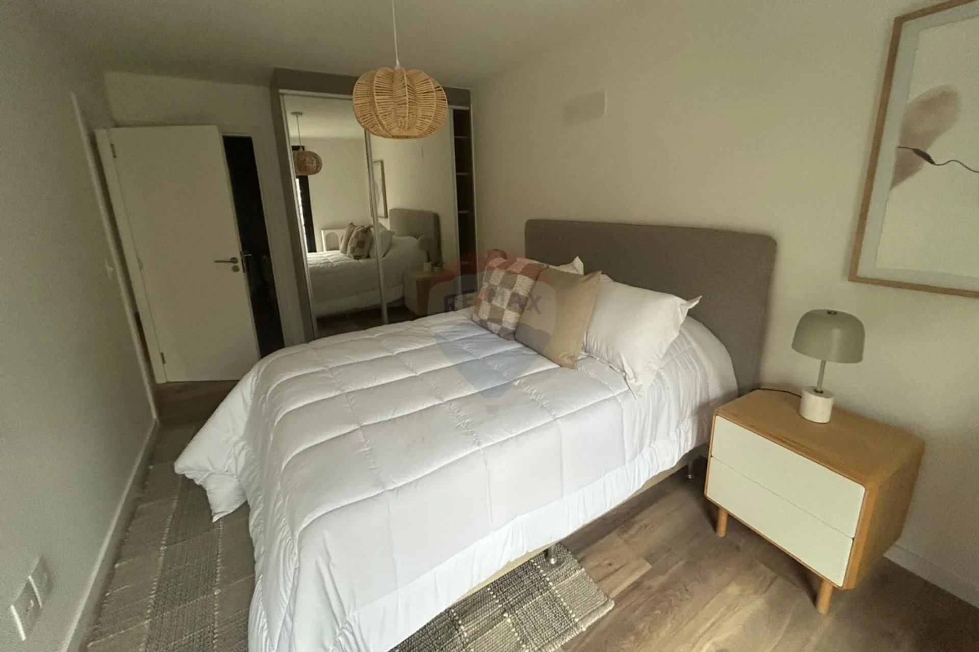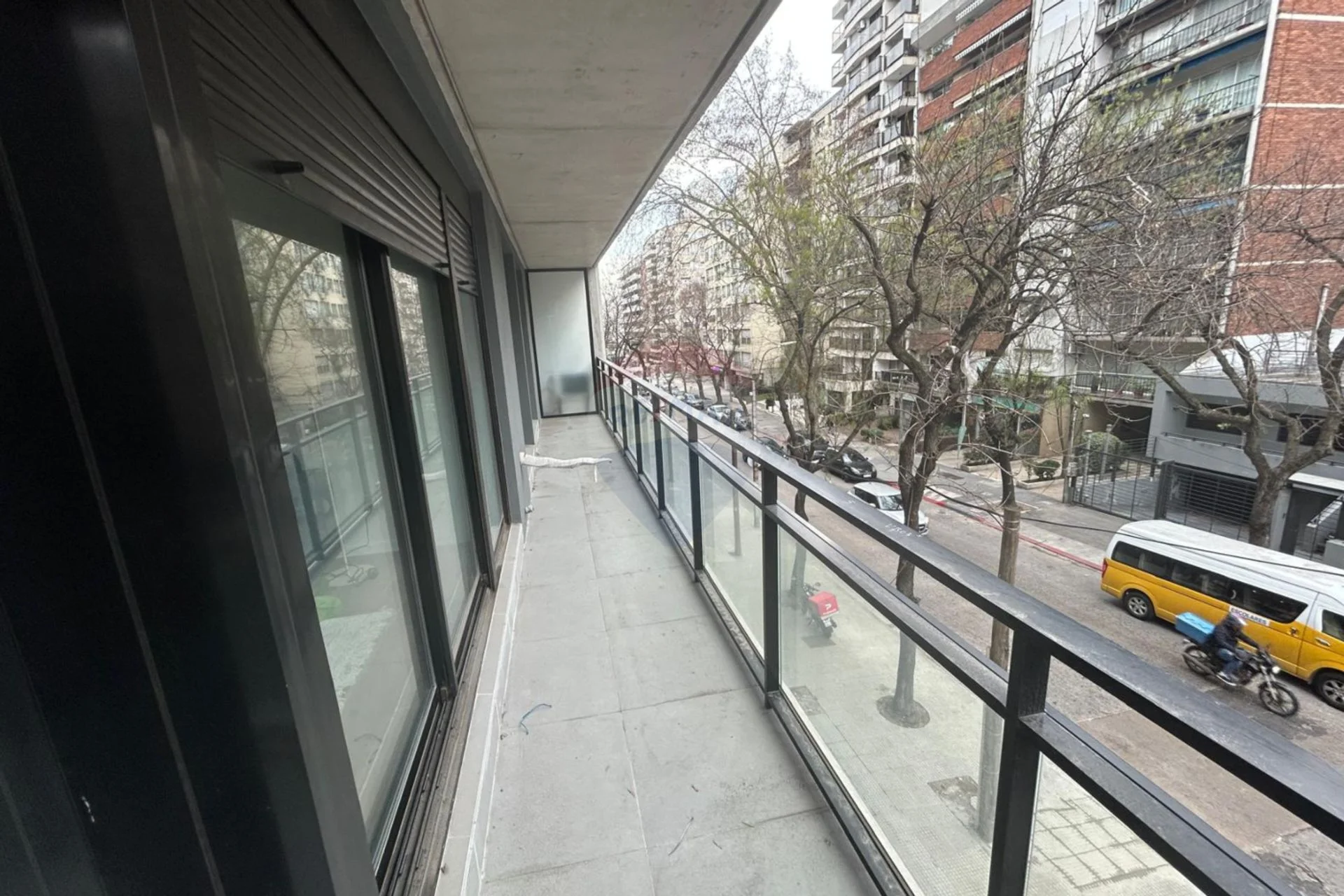Esta unidad contará con 64,2 mts2 construidos, con un amplio ventanal de aluminio y persianas enrollables, y un gran balcón de 18,7 mts2, muy luminoso. Los suelos serán de listones vinílicos estilo madera o flotante. La cocina contará con una moderna encimera de cuarzo, pileta de acero inoxidable, muebles de melamina y un grifería de mesada monocomando. Además, el apartamento vendrá con la preinstalación lista para aire acondicionado, incluyendo desagüe y conexión eléctrica.