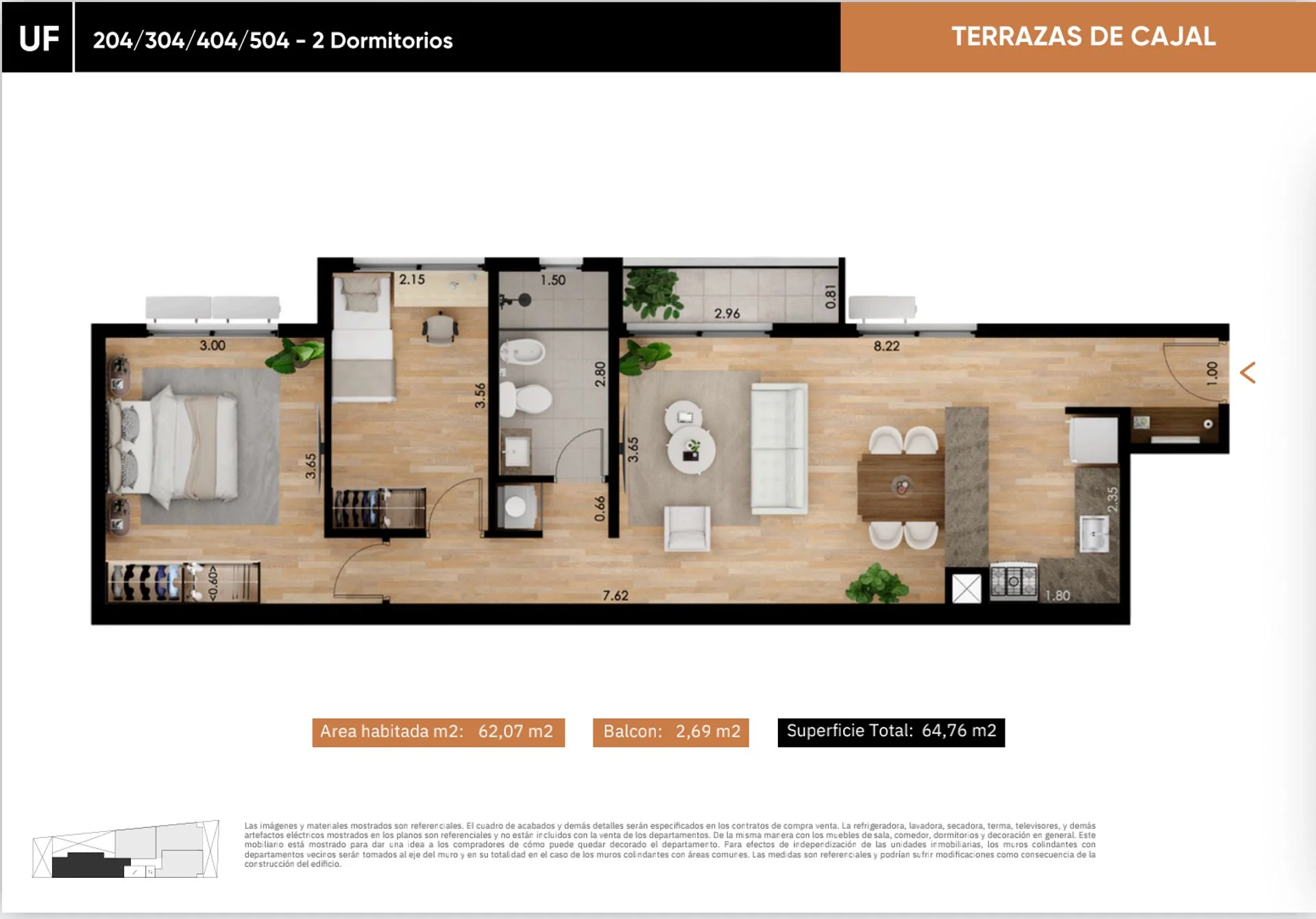 - Pisos en porcelanato símil madera.