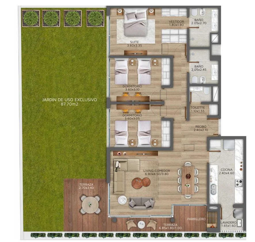 - 3 Dormitorios con salida a Jardín - Principal en Suite - Vestidor