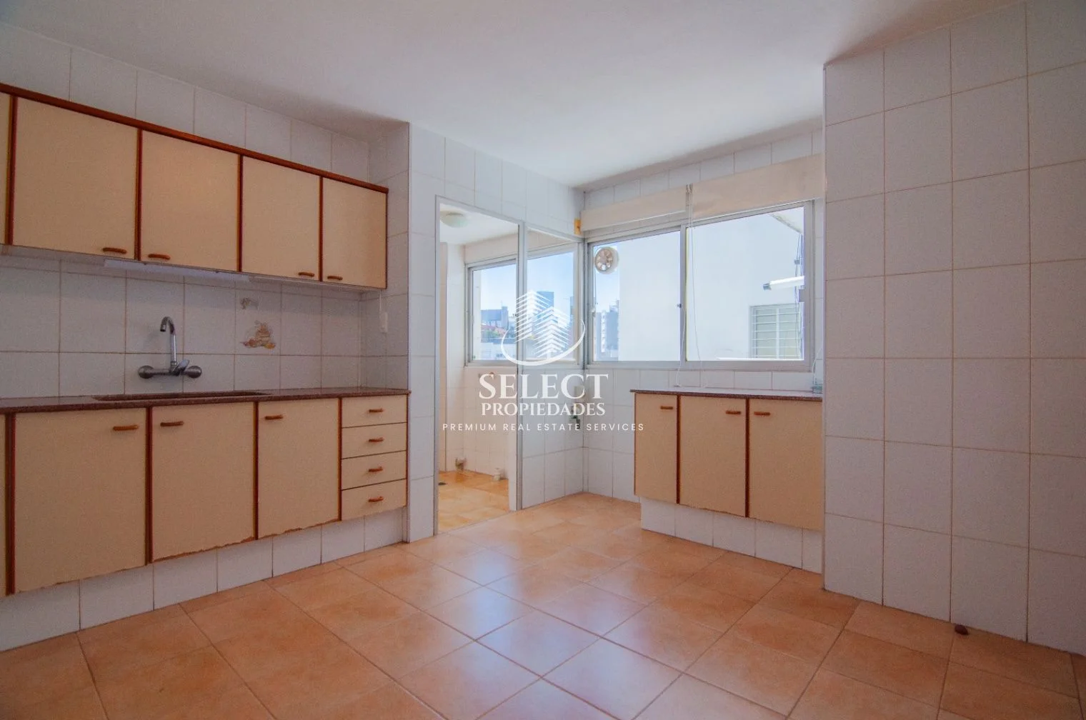 Amplia cocina con doble mesada y lugar para comedor diario.