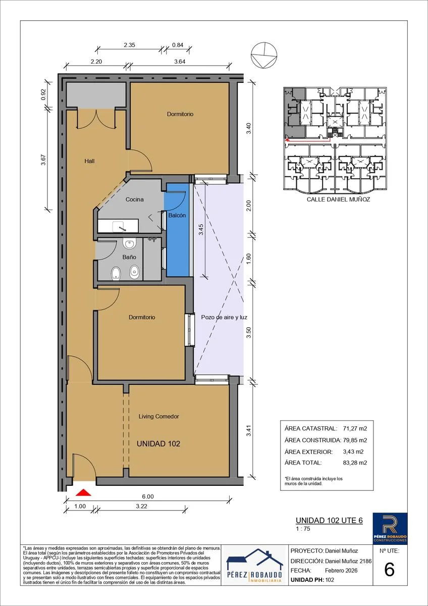 Área construida total: 83.28 m²