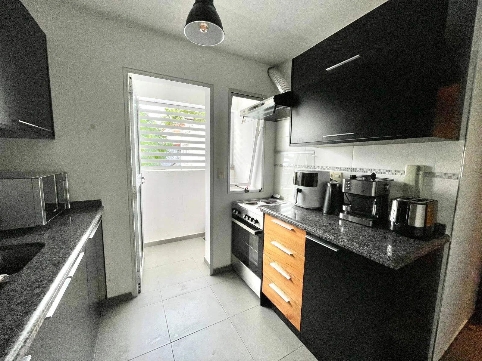 Se compone de tres ambientes, distribuidos en dos cómodos dormitorios y dos baños completos, uno de ellos en suite. El luminoso living comedor se conecta con una terraza al frente que invita a disfrutar del aire libre. La cocina está diseñada para ser funcional y moderna, mientras que la construcción tradicional del edificio asegura un óptimo aislamiento térmico y acústico, brindando así una experiencia de vida placentera y duradera.