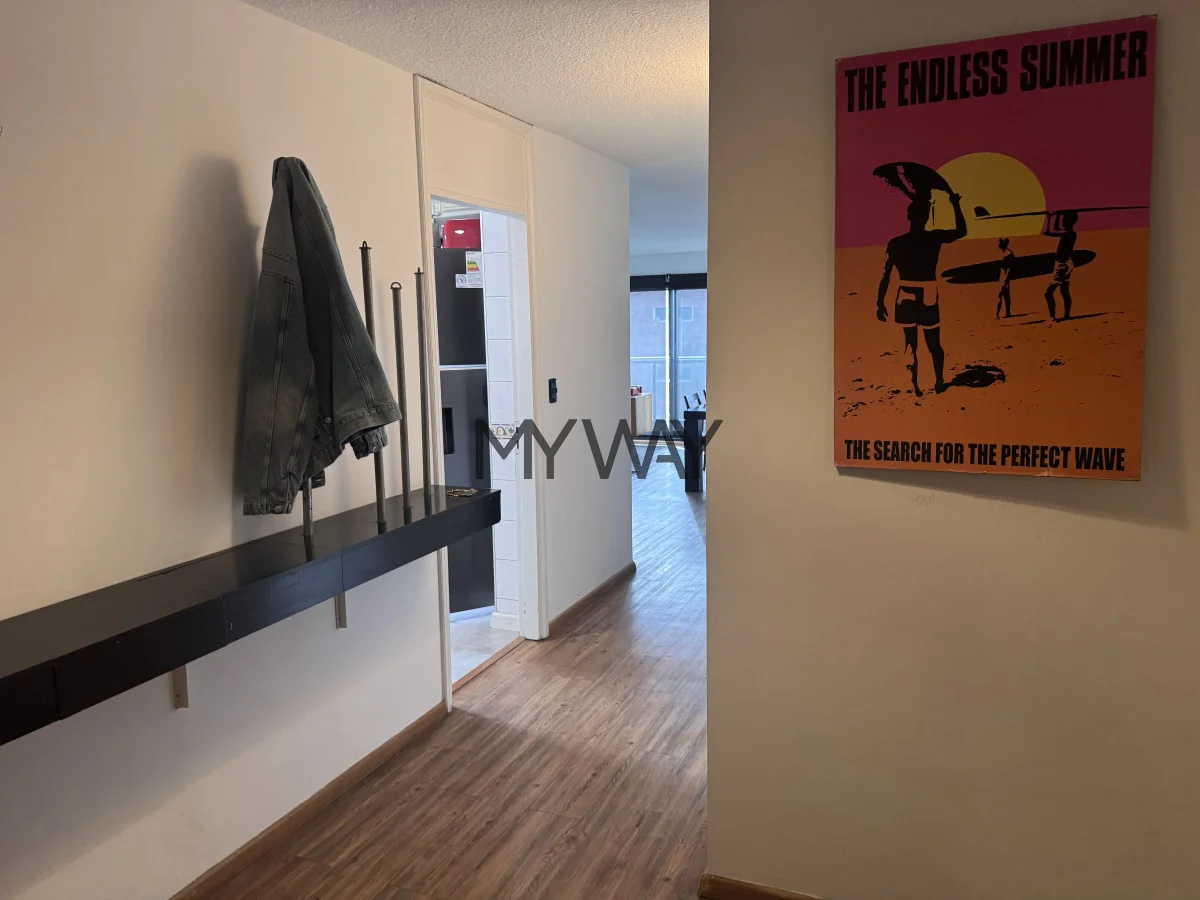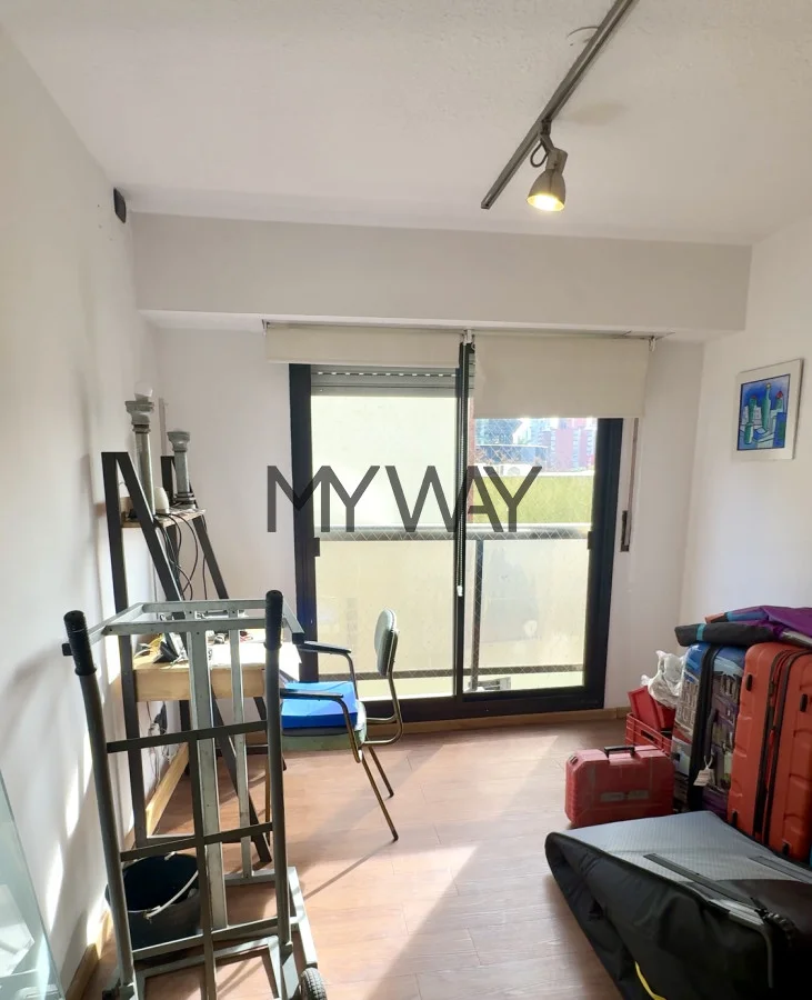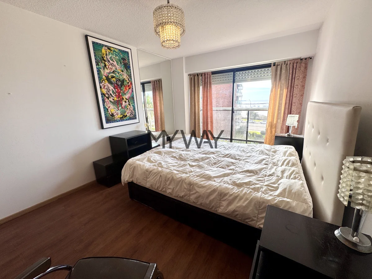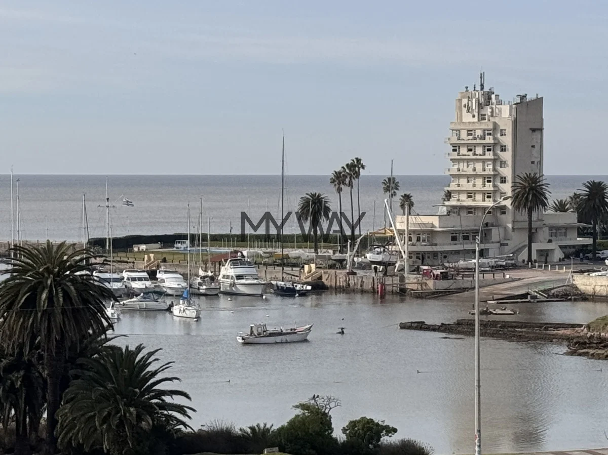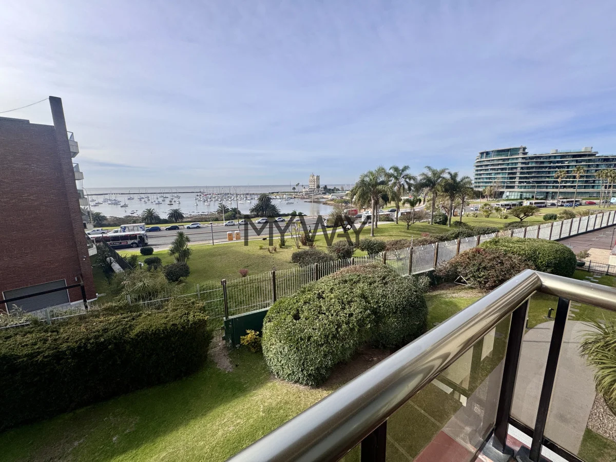Amplio living comedor con vista hacia el Puertito del Buceo con salida a balcón a lo largo de todo el living.