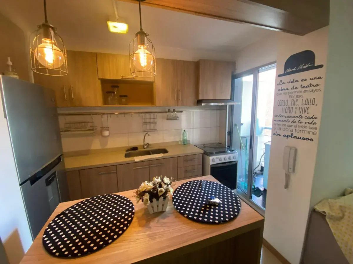 . Cocina semi integrada con placares, campana extractora, barra desayunadora y terraza lavadero